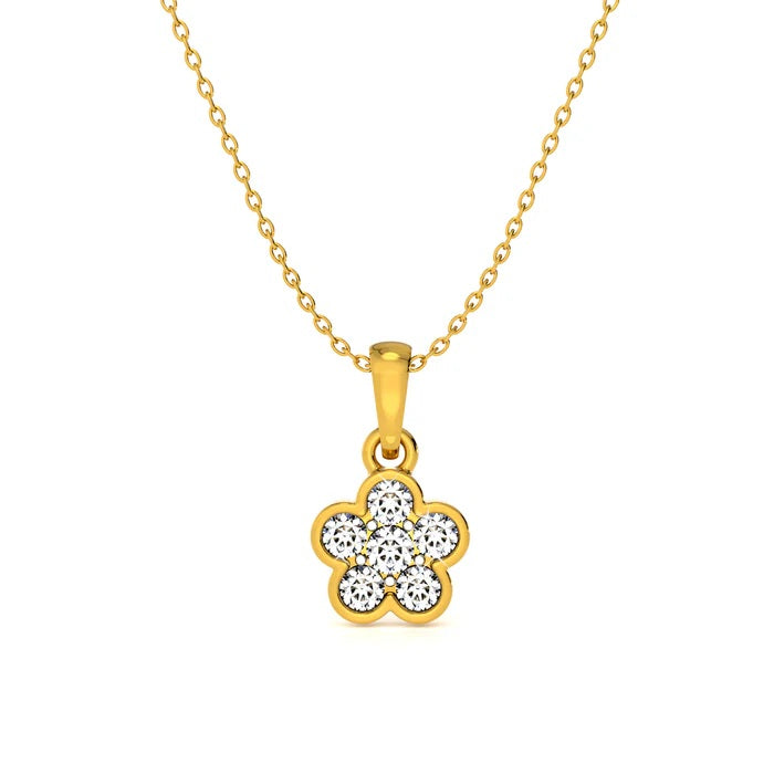 The pendant features a flower-shaped cluster of sparkling cubic zirconia stones, beautifully set in 925 sterling silver with a rich yellow gold plating.