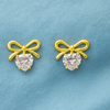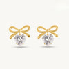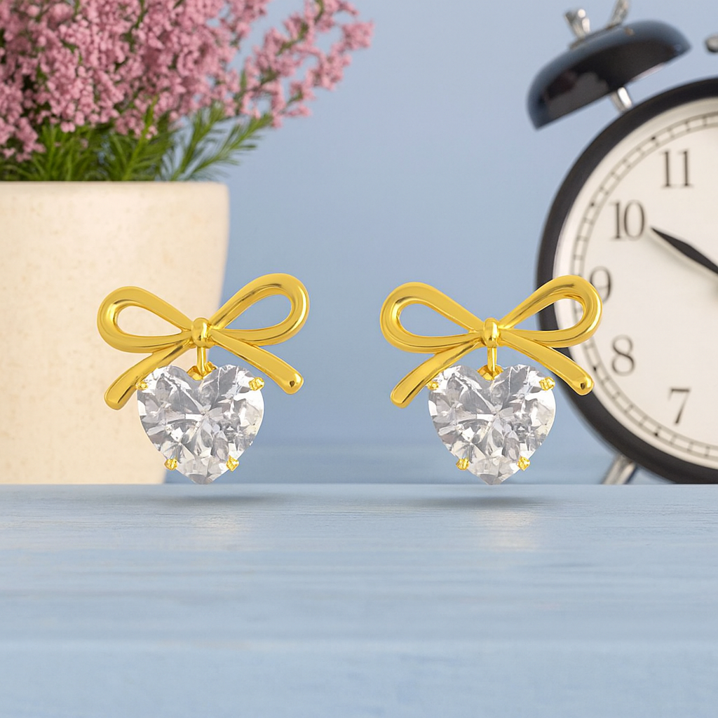 Graceful and sparkling, these Bow Heart Stud Earrings from Vagmine Jewel embody timeless charm and romance. Crafted from 925 sterling silver and coated with rich yellow gold plating, each earring features a delicate bow design accented with a dazzling heart-shaped white cubic zirconia stone. Perfect for date nights, weddings, or as a heartfelt gift, these earrings add a hint of sparkle and sophistication to any outfit.