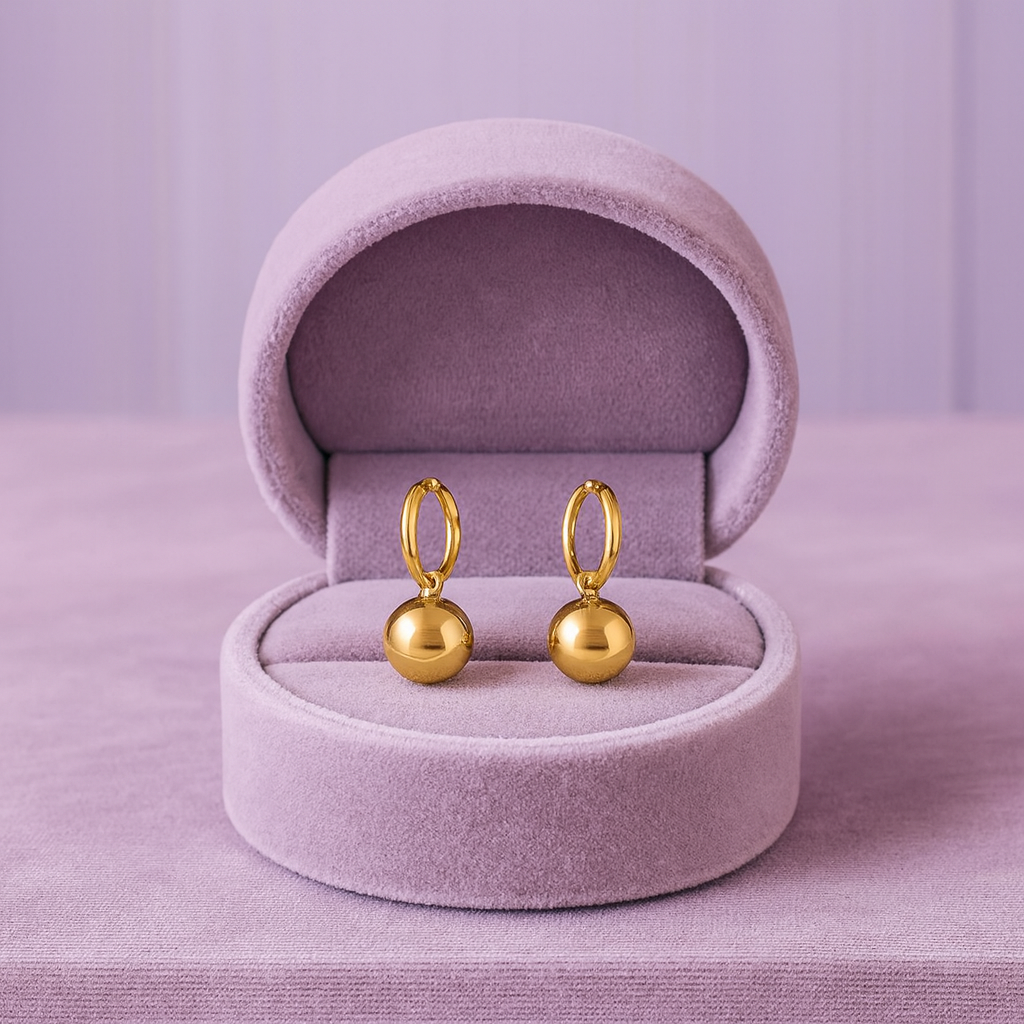 Sleek and timeless, these gold ball drop hoop earrings are the perfect balance of simplicity and style.
