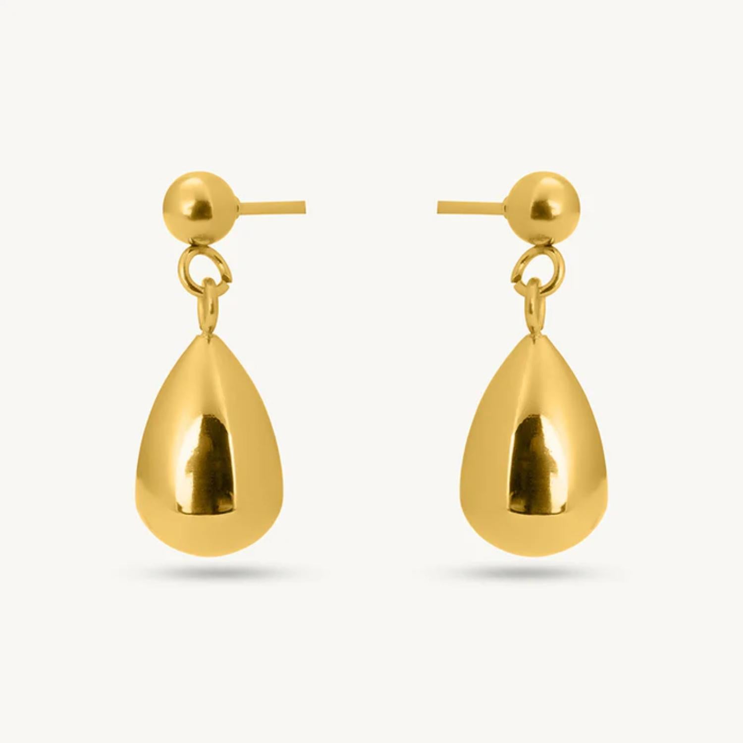 Add a touch of refined beauty with these gold teardrop dangle earrings from Vagmine Jewel. Featuring a smooth, high-polish teardrop charm suspended from a sleek stud, these earrings are a perfect balance of sophistication and simplicity.