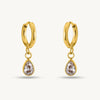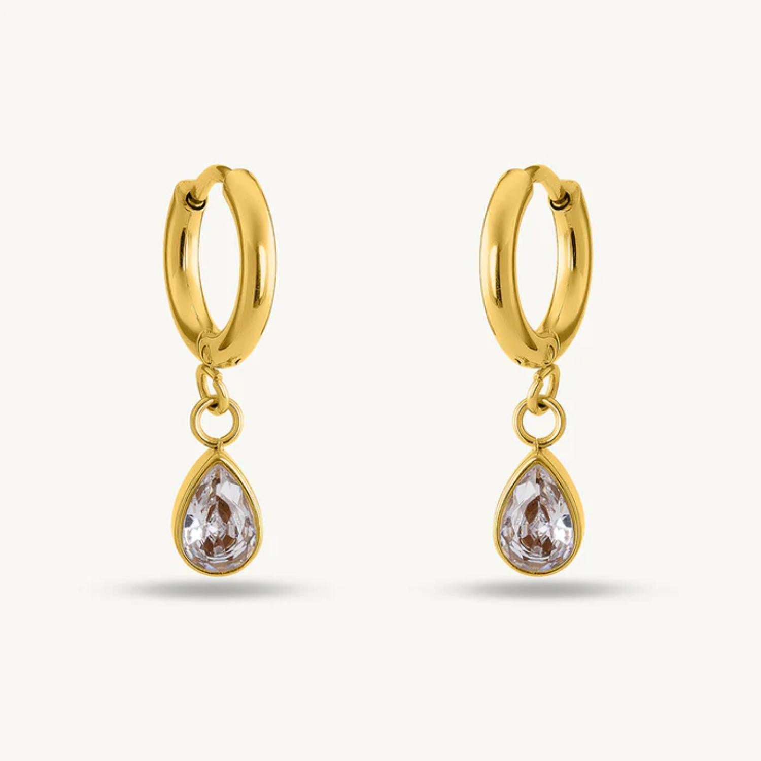 Grace your look with these gold teardrop dangle hoop earrings from Vagmine Jewel. Each earring features a delicate hoop with a sparkling teardrop crystal drop that sways beautifully with every movement. The high-polish gold finish enhances the brilliance of the stones, creating a timeless and graceful silhouette.