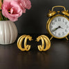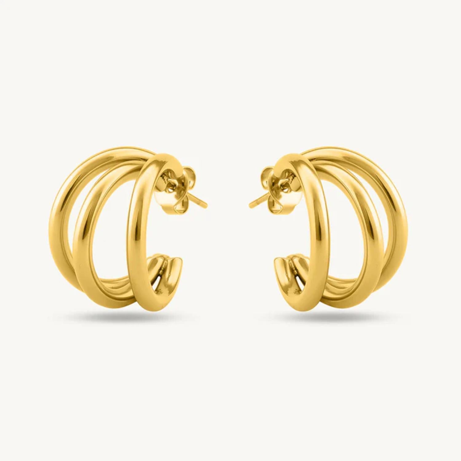 Elevate your look with these Gold Triple Hoop Earrings from Vagmine Jewel, a bold take on the timeless hoop. Featuring three interlinked gold bands, these earrings offer volume, shine, and elegance — the perfect mix of modern minimalism and high-fashion flair.