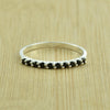 Embrace timeless sophistication with this elegant Black Spinel ring, featuring 0.30 carats of 2x2mm round-cut gemstones meticulously set in 925 sterling silver. The deep, jet-black hue of the spinel stones radiates mystery and modern charm, creating a captivating contrast against the sleek silver band.