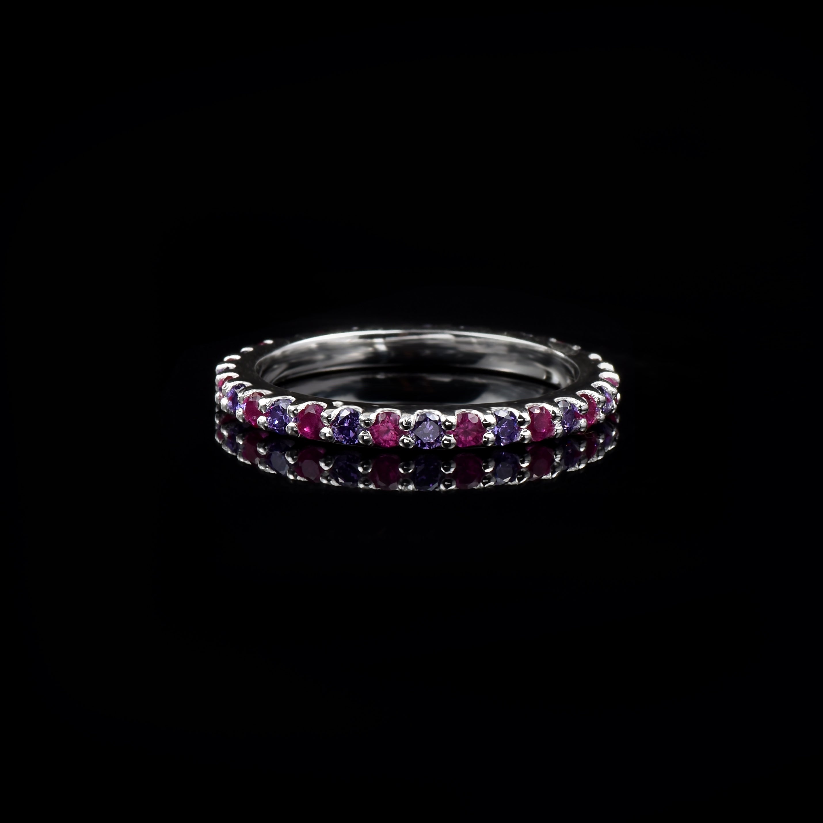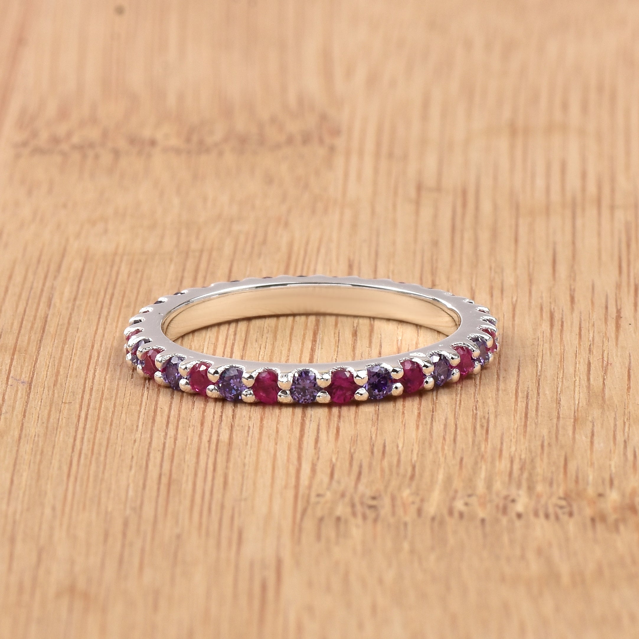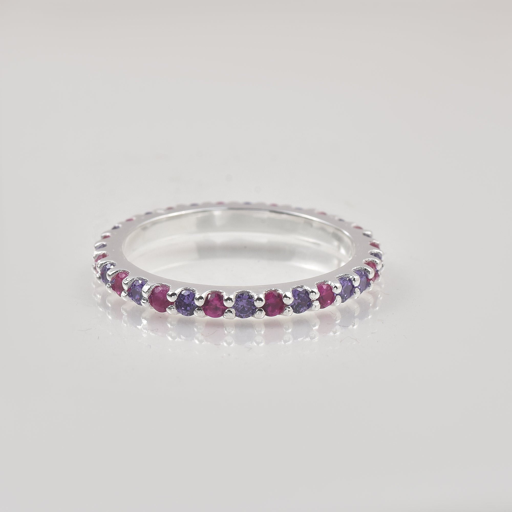 0.84 Ct Round Amethyst & Ruby Half Eternity Ring 925 Sterling Silver