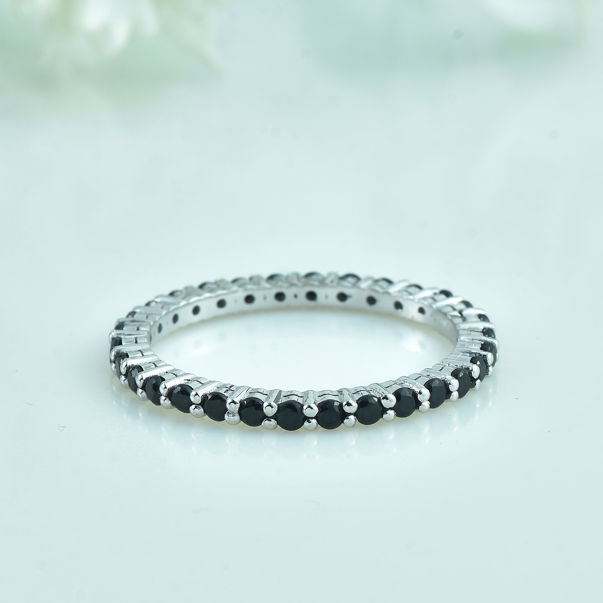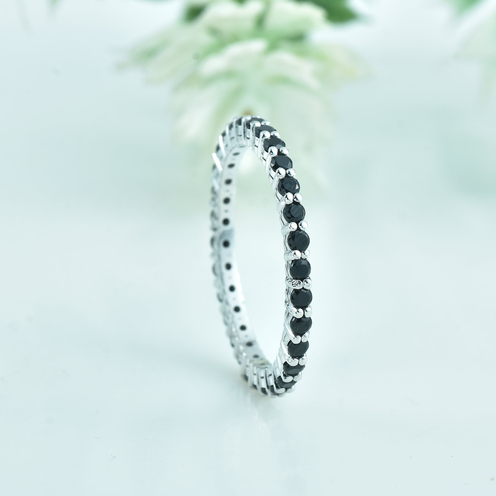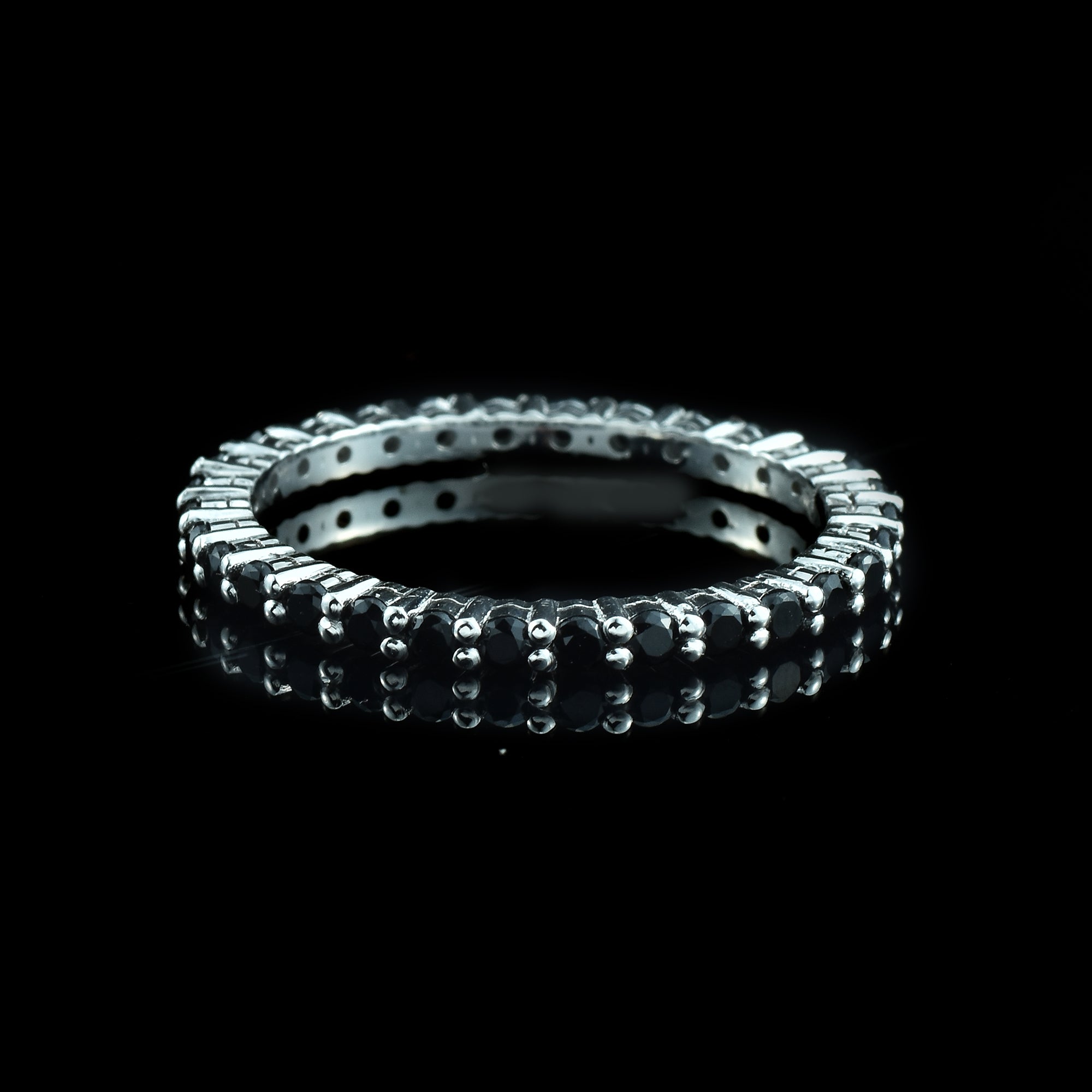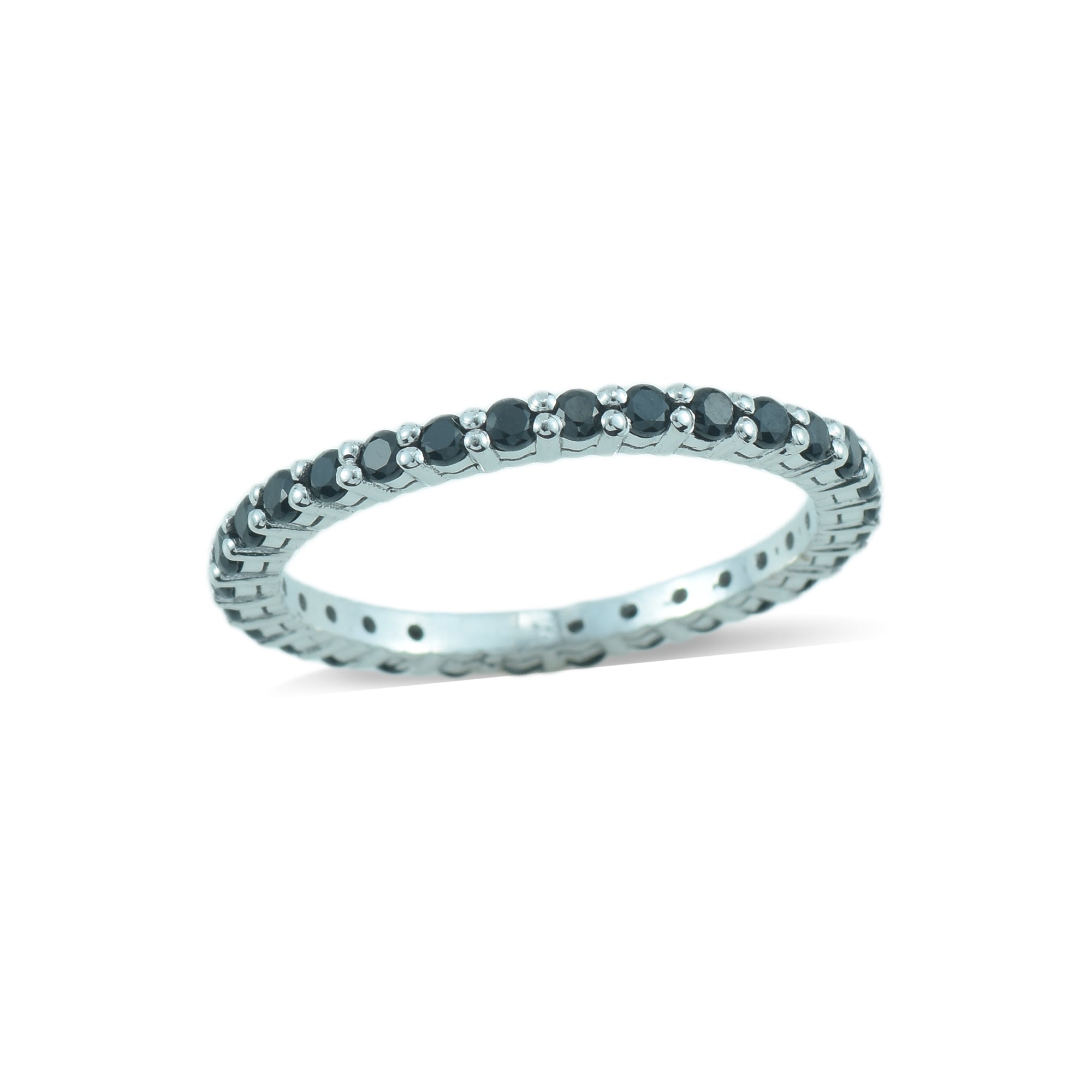 2mm Round Black Spinel Eternity Band Ring 925 Sterling Silver