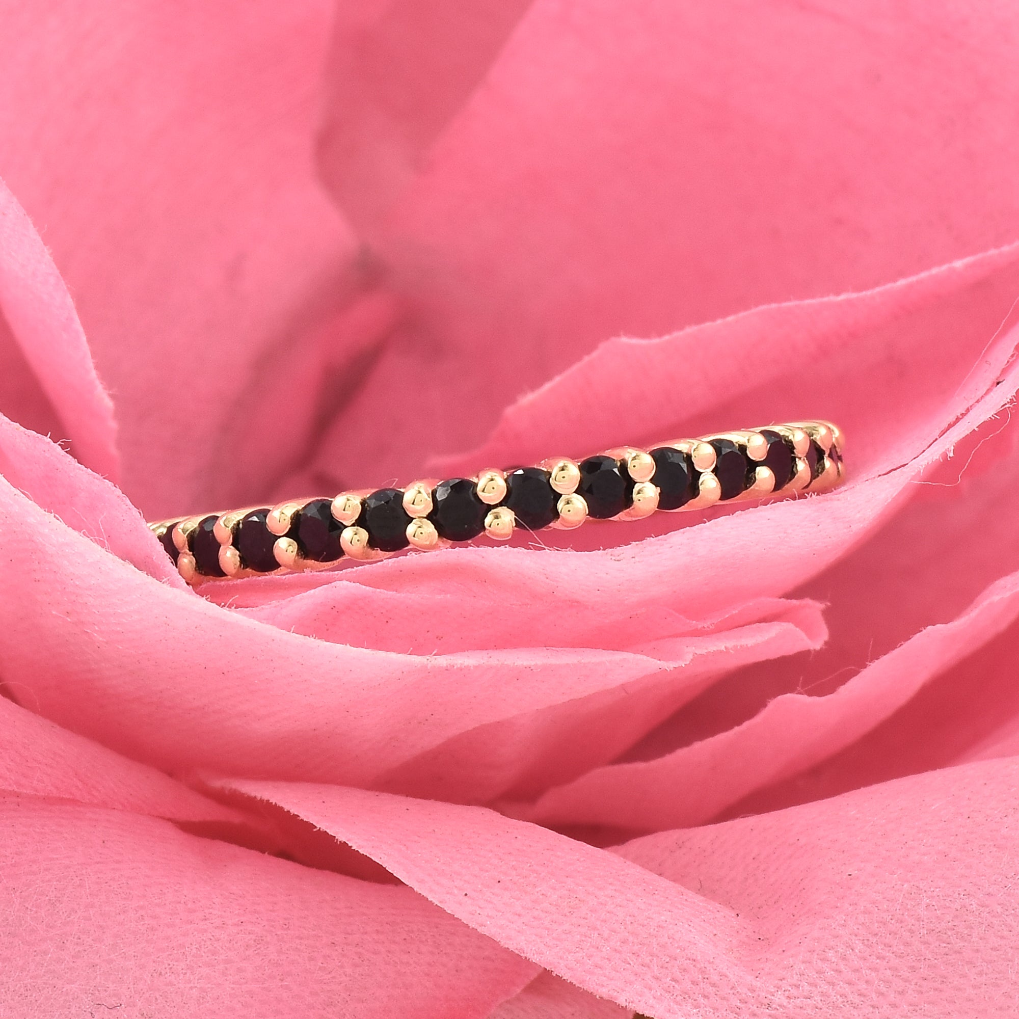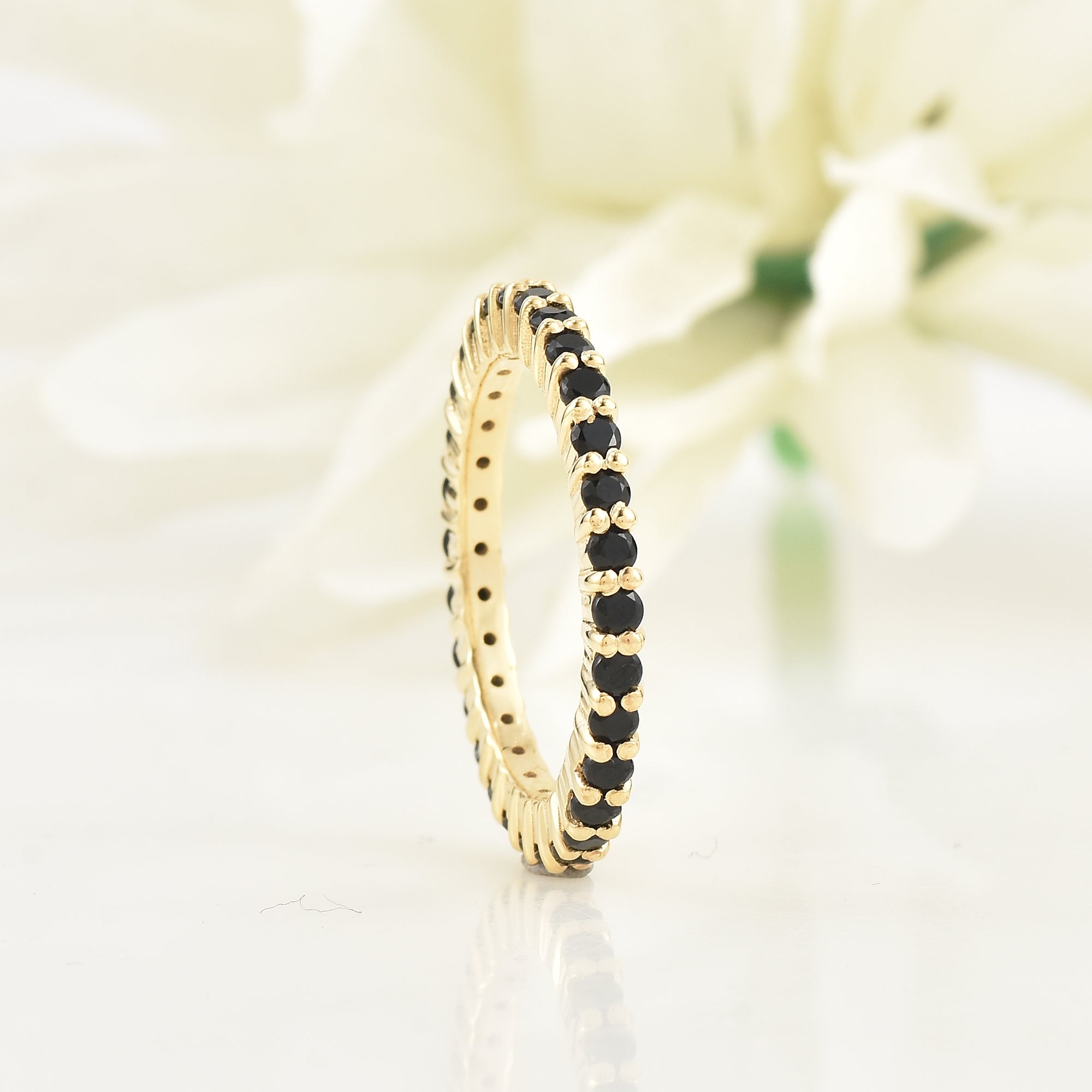 2mm Round Black Spinel Full Eternity Band Ring 925 Sterling Silver Yellow Gold Plated
