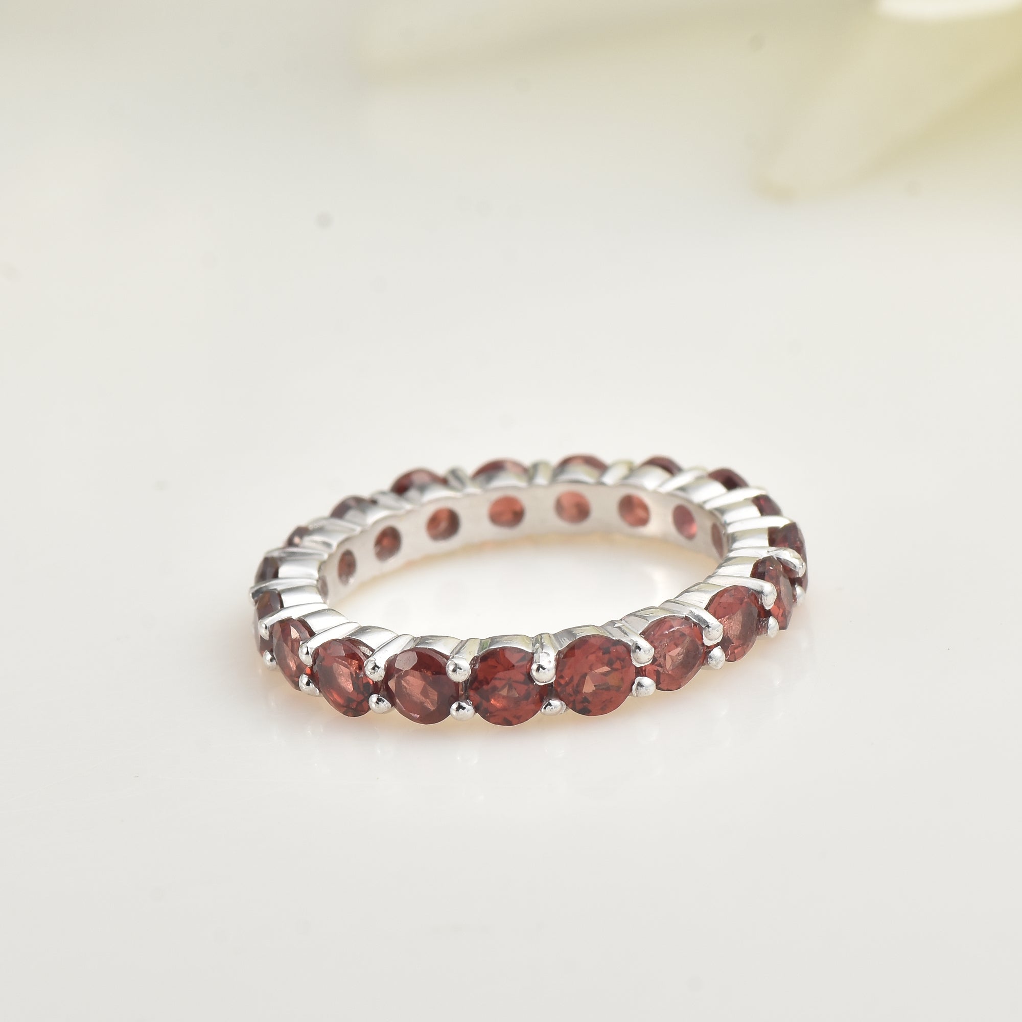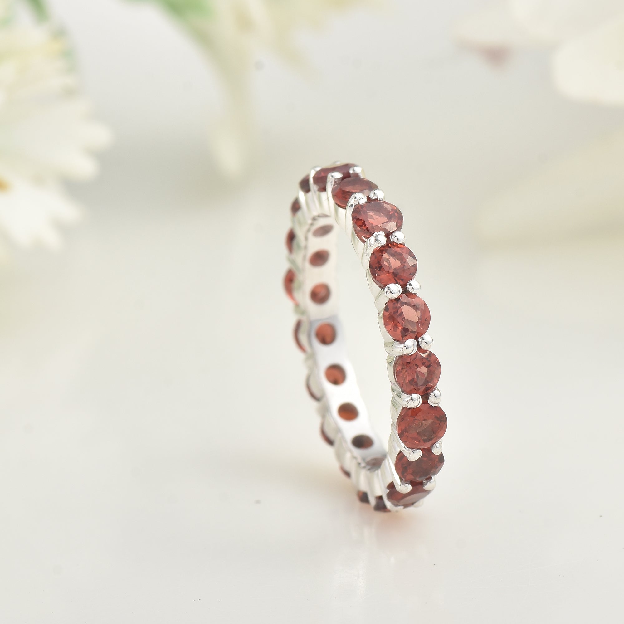 3.00 Carat Round Garnet Full Eternity Band Ring 925 Sterling Silver