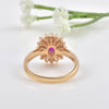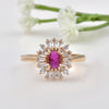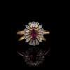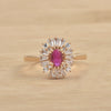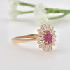 Vintage-Inspired Ruby Ring with Baguette and Round White Topaz Halo – Elegant Cocktail Design