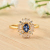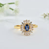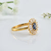 Gold-Plated Ring with 6x4mm Oval Tanzanite & Radiant Halo Design