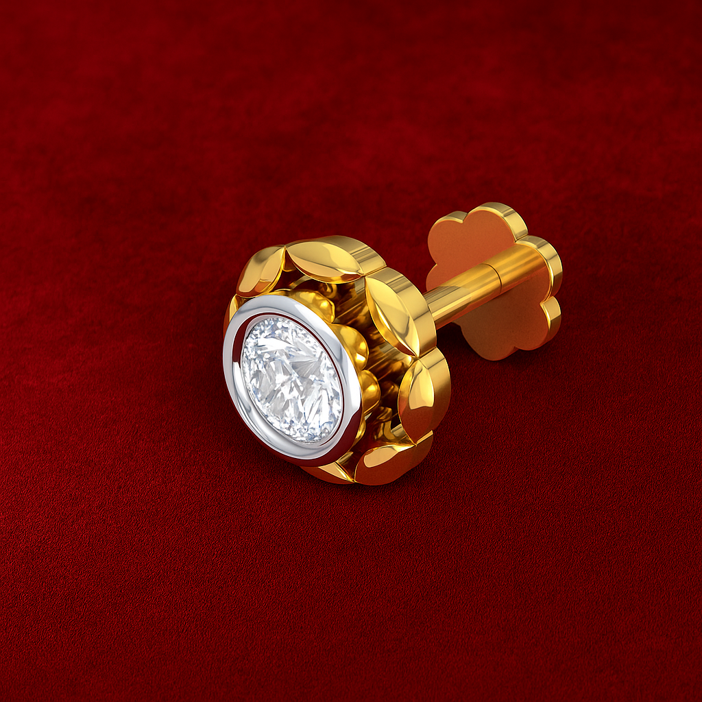 This classic single-stone nose pin embodies pure elegance and simplicity. Handcrafted from fine 925 sterling silver with a luxurious yellow gold plating, it features a brilliant round white cubic zirconia secured in a four-prong setting. The minimalist solitaire design gives it a timeless charm, making it perfect for everyday wear or subtle festive sparkle. Lightweight, elegant, and comfortable — a must-have staple for any jewelry collection.
