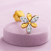 Bring a touch of natural beauty and sparkle to your style with this exquisite floral nose pin, crafted in 925 sterling silver and finished with a radiant yellow gold plating. The design features a dual-tone flower motif, where marquise-shaped petals adorned with white cubic zirconia stones contrast beautifully with polished gold petals. Elegant and eye-catching, this piece perfectly blends traditional charm with a modern flair — ideal for festive occasions or everyday sophistication.
