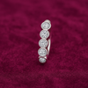 Shine with subtle sophistication with this 5-stone white cubic zirconia nose ring, beautifully handcrafted in 925 sterling silver. The sleek design features five sparkling round-cut CZ stones set in a smooth bezel pattern, creating a continuous line of brilliance. Lightweight, comfortable, and timeless, this nose pin adds a refined sparkle to your daily look — perfect for any occasion.