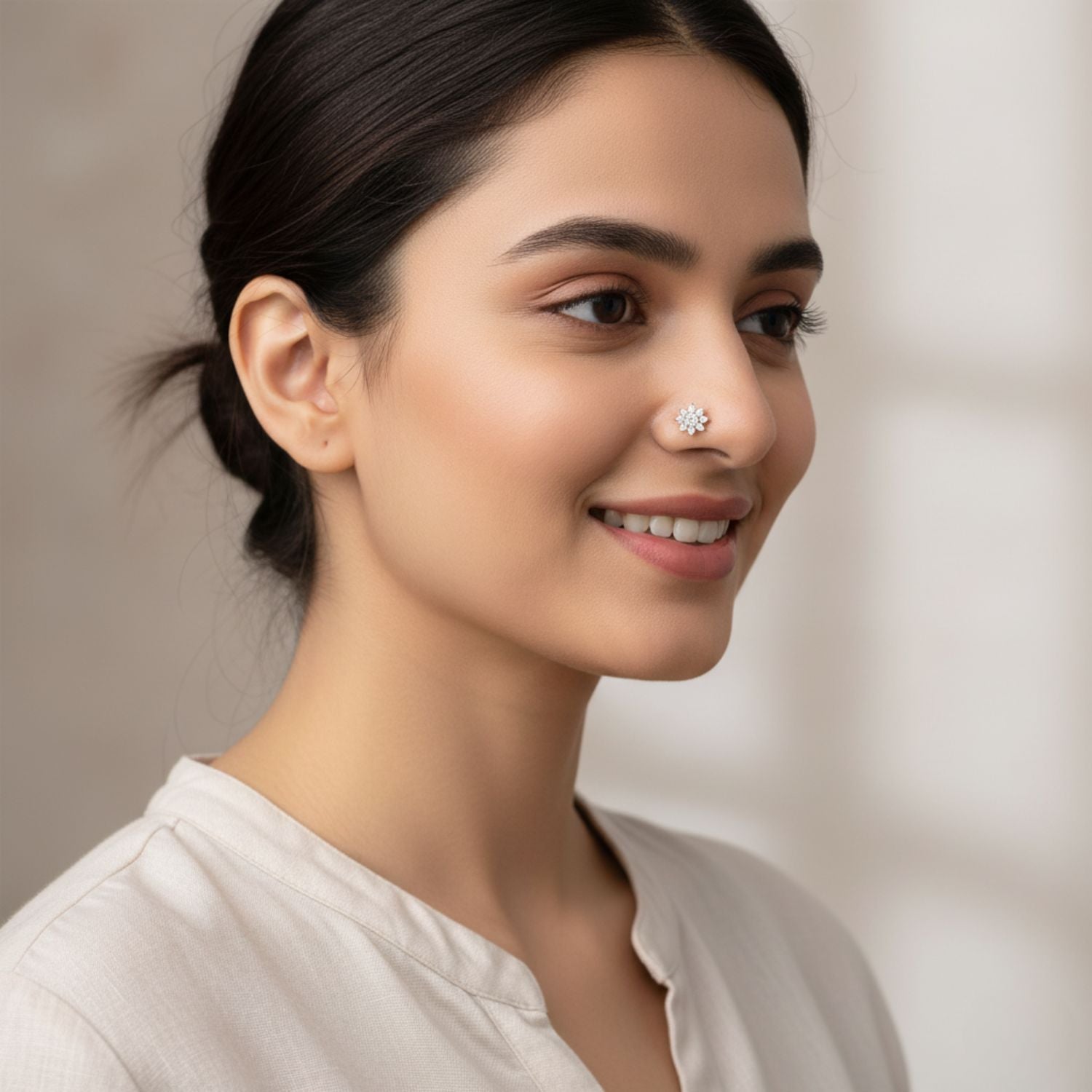 Whether you prefer a classic or contemporary look, this floral CZ nose pin adds just the right amount of shine and sophistication.