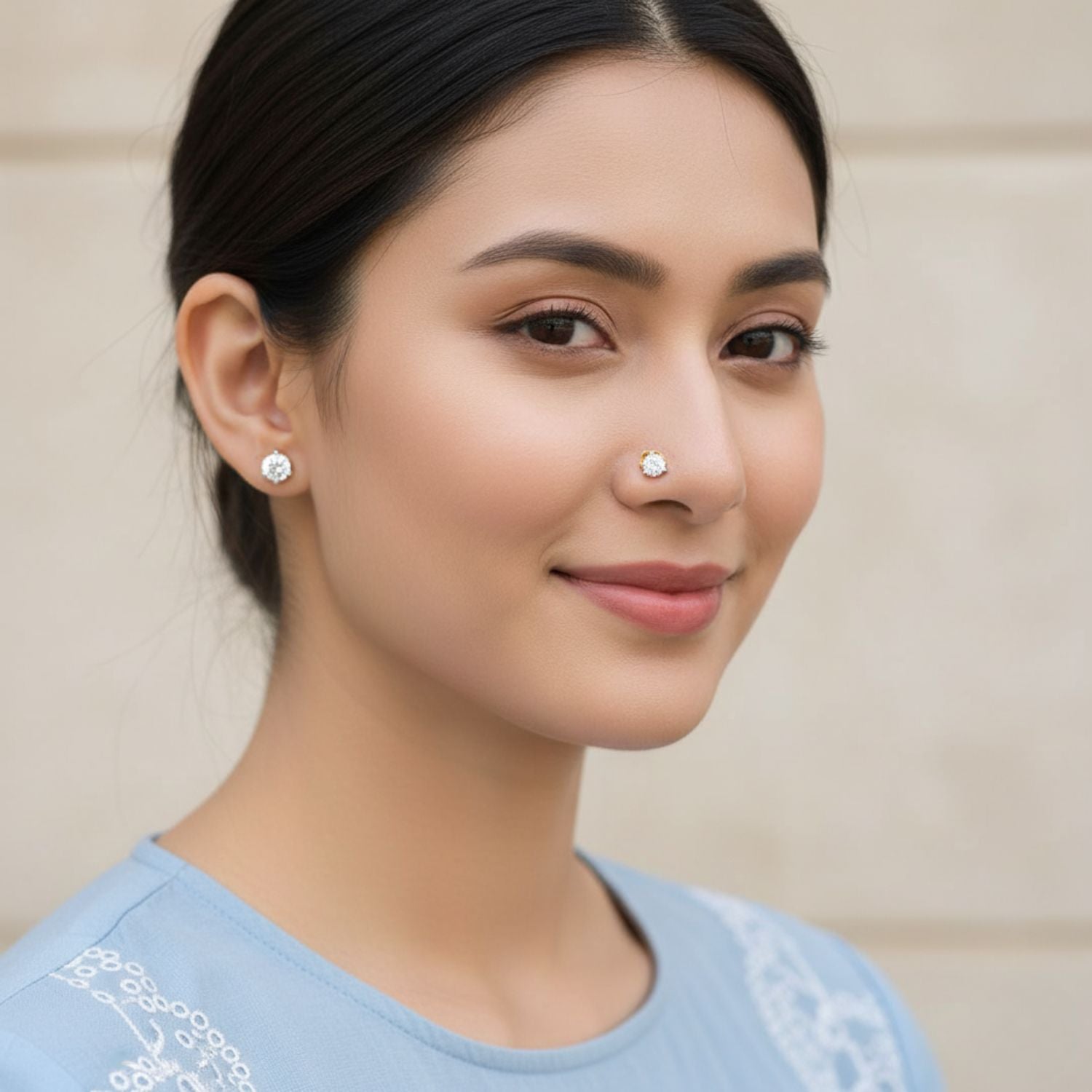 This Round White CZ Nose Pin is the epitome of elegance and everyday luxury. Expertly crafted in 925 sterling silver with rich yellow gold plating, it features a brilliant round-cut white cubic zirconia stone in a sleek prong setting. The design highlights the stone’s sparkle and clarity, creating a radiant yet subtle look that complements every outfit. Lightweight, comfortable, and durable, this piece is perfect for daily wear or gifting.