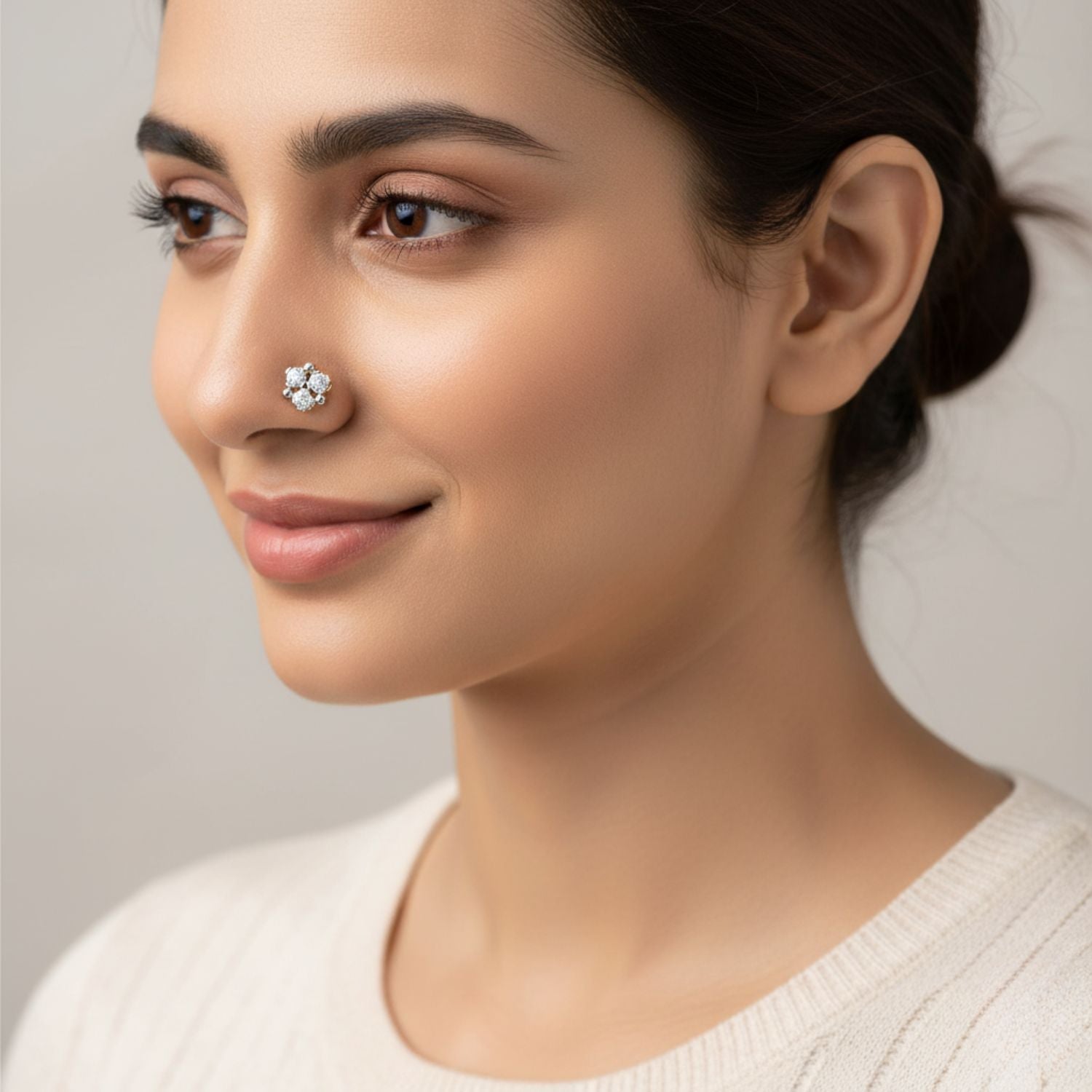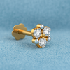 Add a sparkle of elegance to your everyday look with this beautifully crafted White CZ cluster nose pin. Made from premium 925 Sterling Silver and finished with a radiant Yellow Gold Plating, this piece features a stylish 4-stone floral arrangement. Each round White CZ is prong-set for maximum shine, creating a bright and balanced cluster design. The combination of silver prongs with gold plating adds a refined two-tone appeal. With its secure screw-back closure and high-polish finish, this nose pin is perfect for daily wear or special occasions.