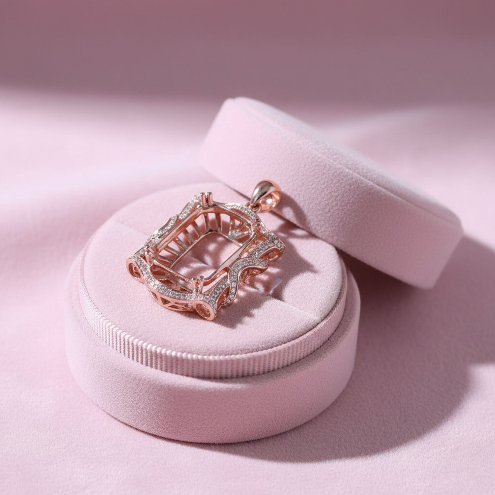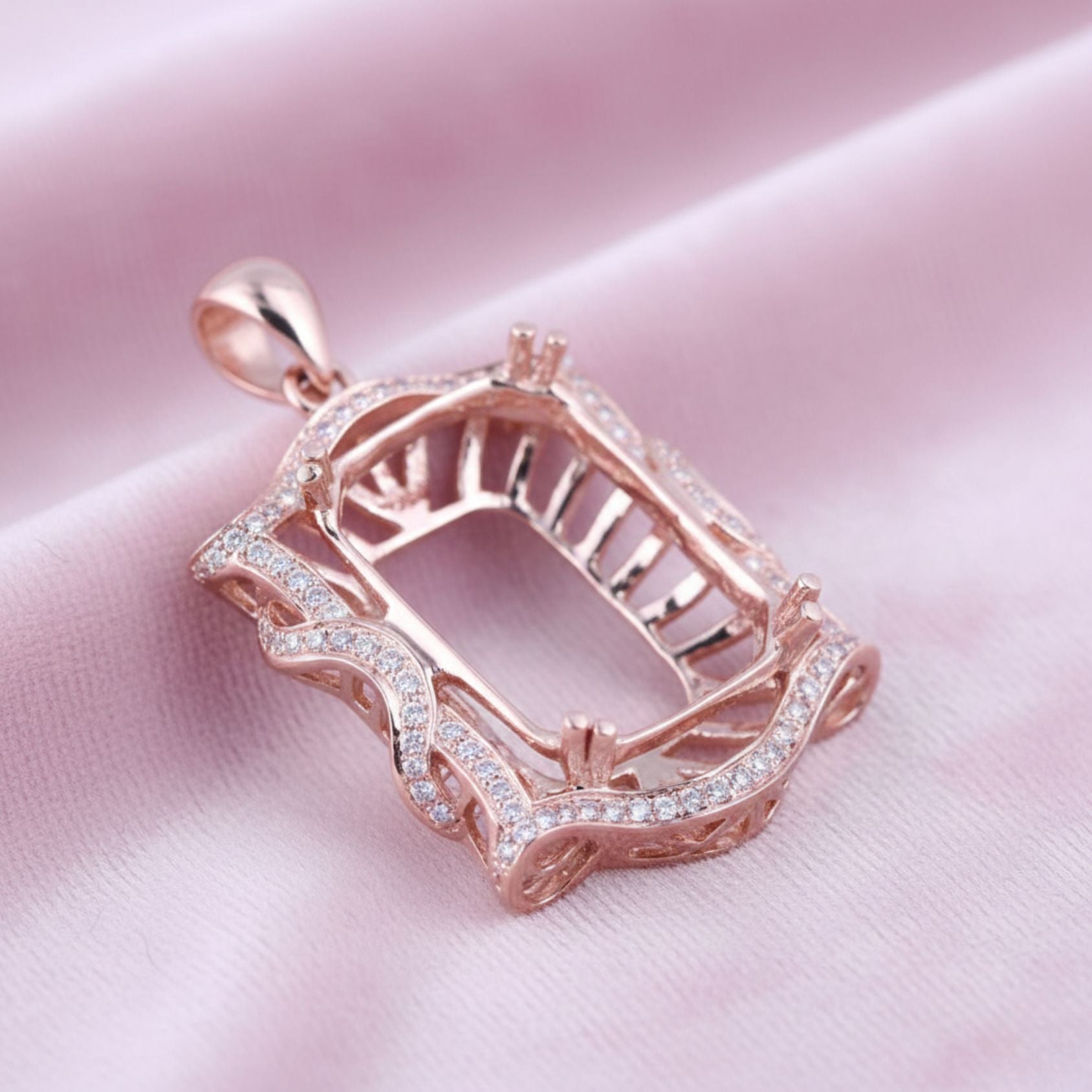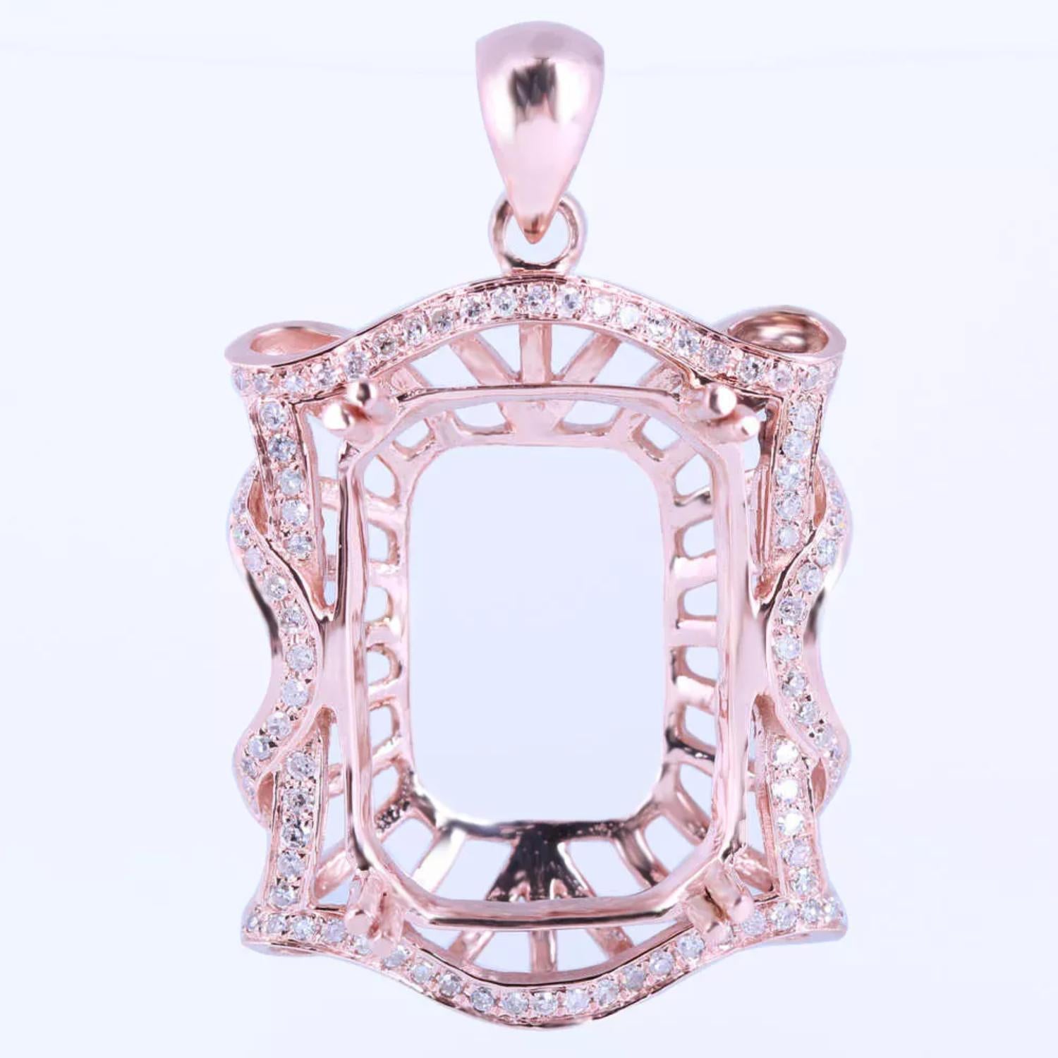 Vintage-Inspired Octagon Semi-Mount Pendant with CZ Accents – Rose Gold Finish
