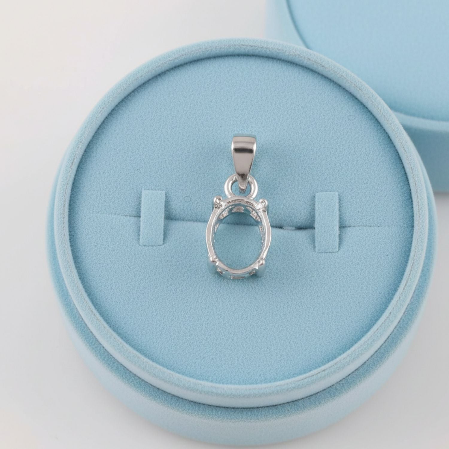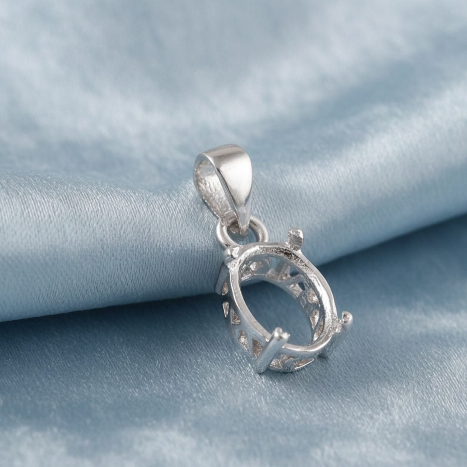 Craft a beautiful custom pendant with this 6x4mm oval semi mount, made from high-quality 925 sterling silver. Designed with a clean and elegant 4-prong setting, this mount securely holds a 6x4mm oval gemstone, making it ideal for sapphire, emerald, ruby, moissanite, or any small precious stone.