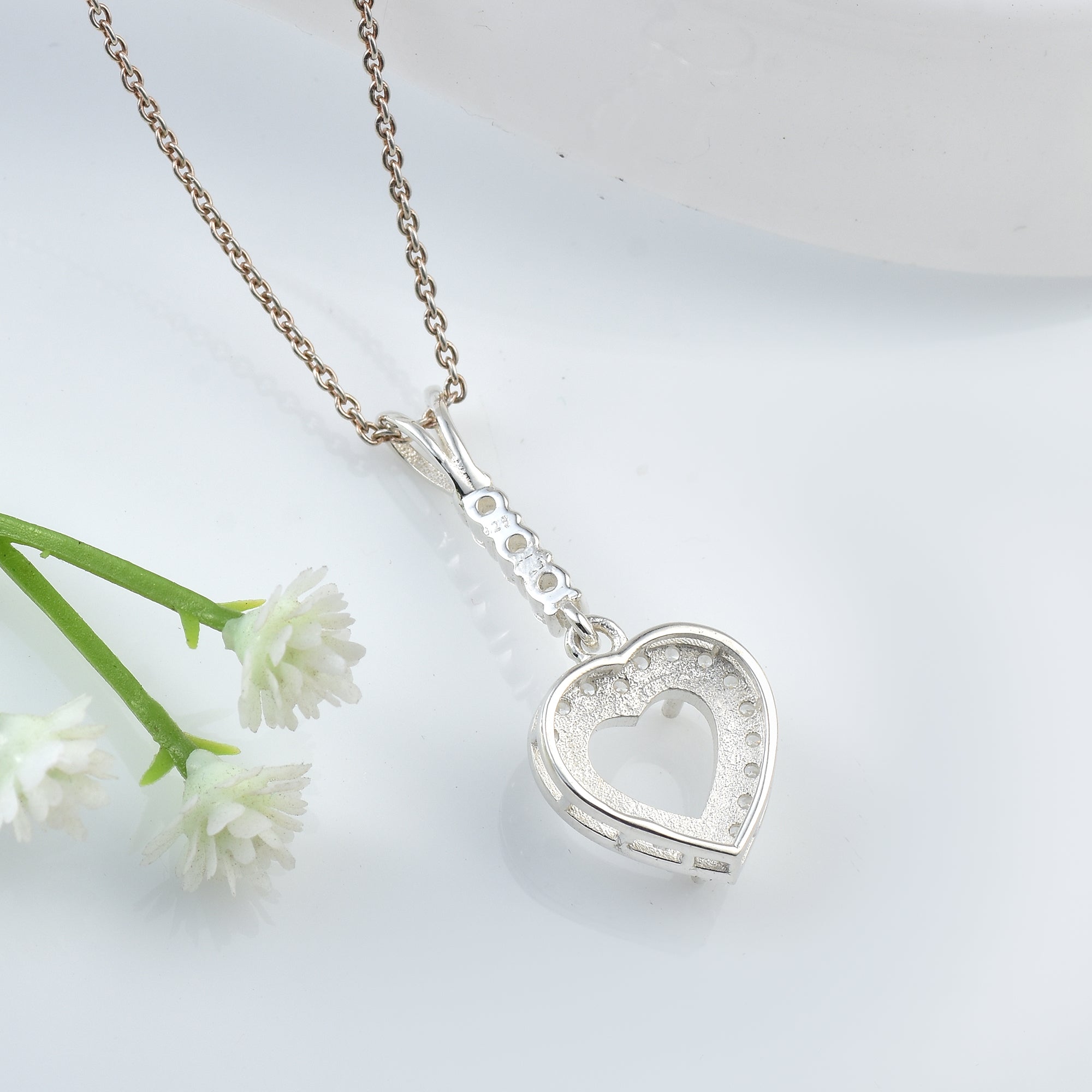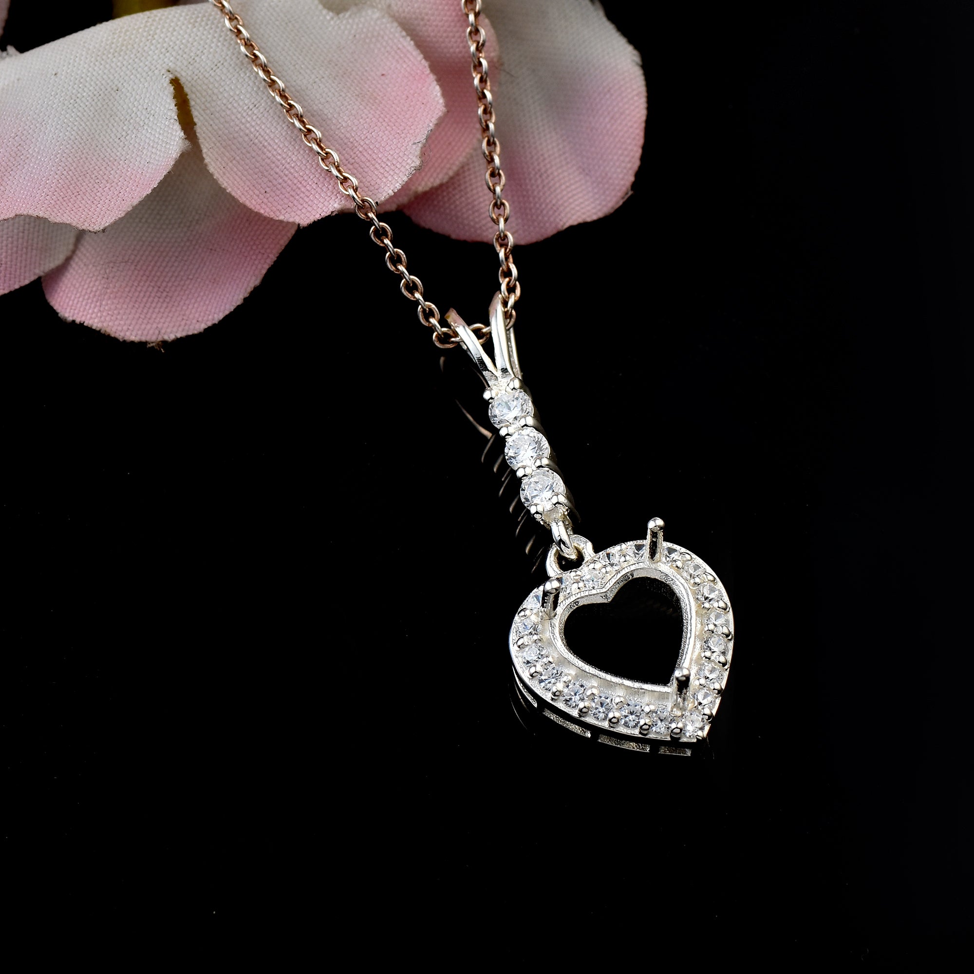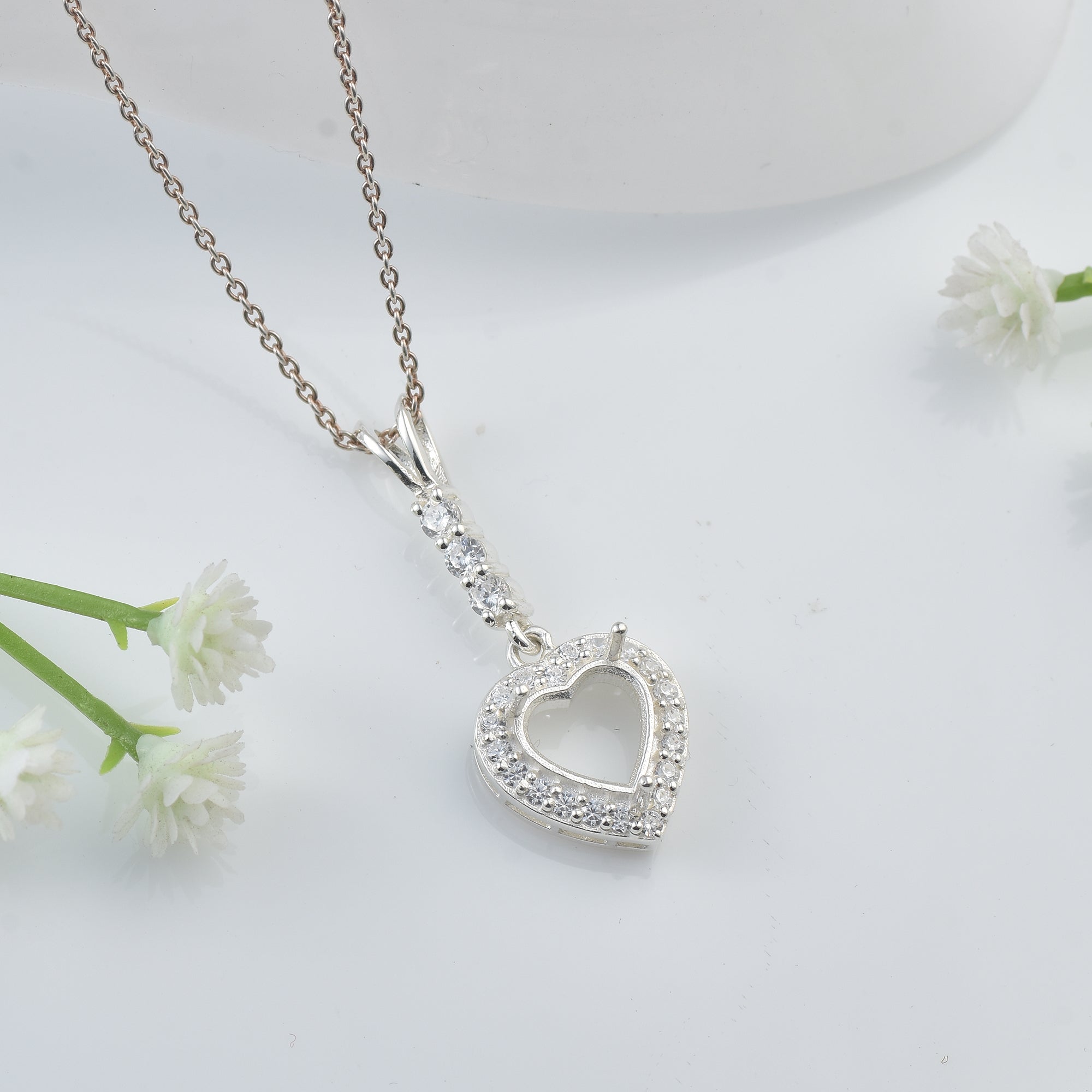 Romantic Heart-Shaped Semi-Mount Pendant with Sparkling CZ Accents