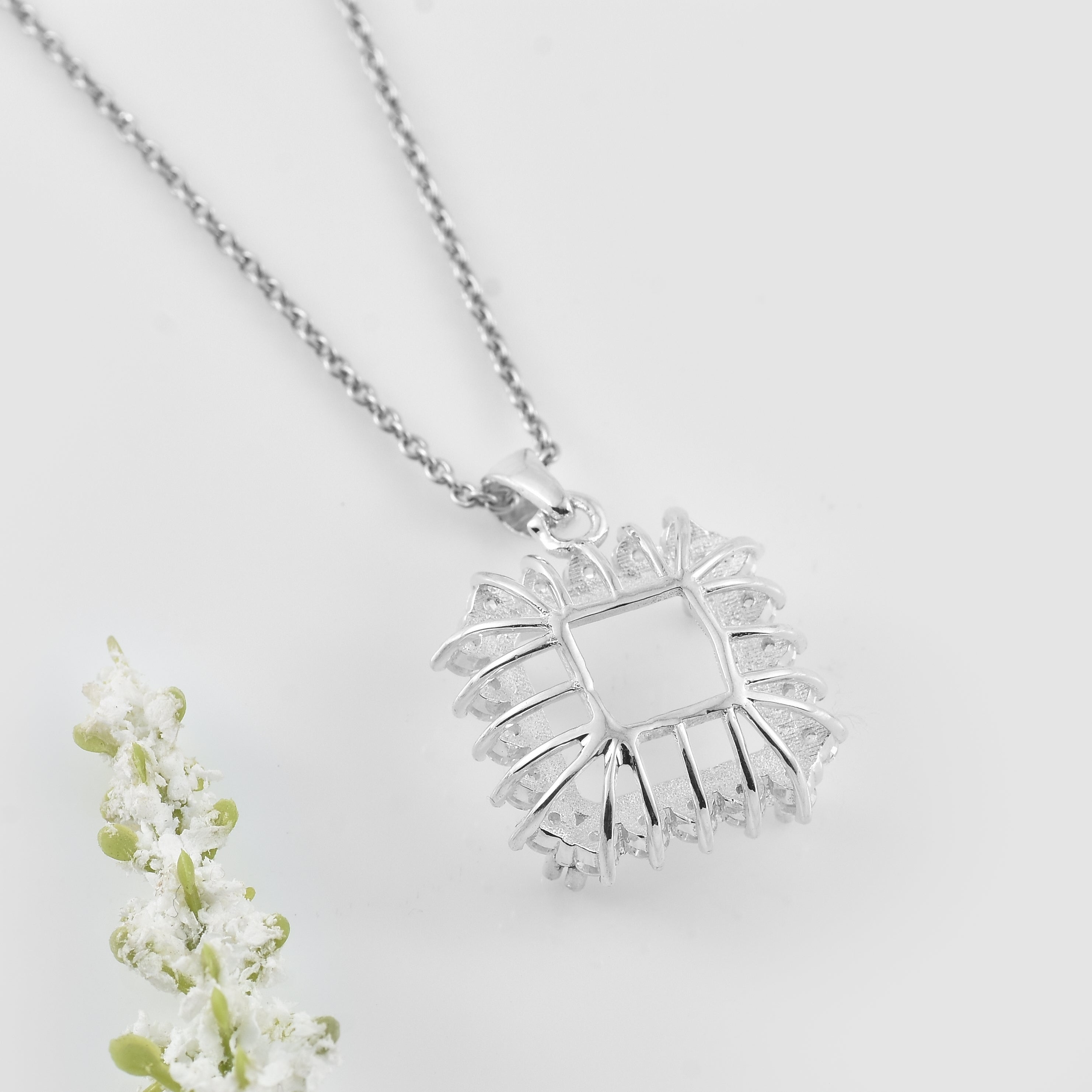 Elegant Square Halo Semi-Mount Pendant with Sparkling CZ – 10x10MM Octagon Setting