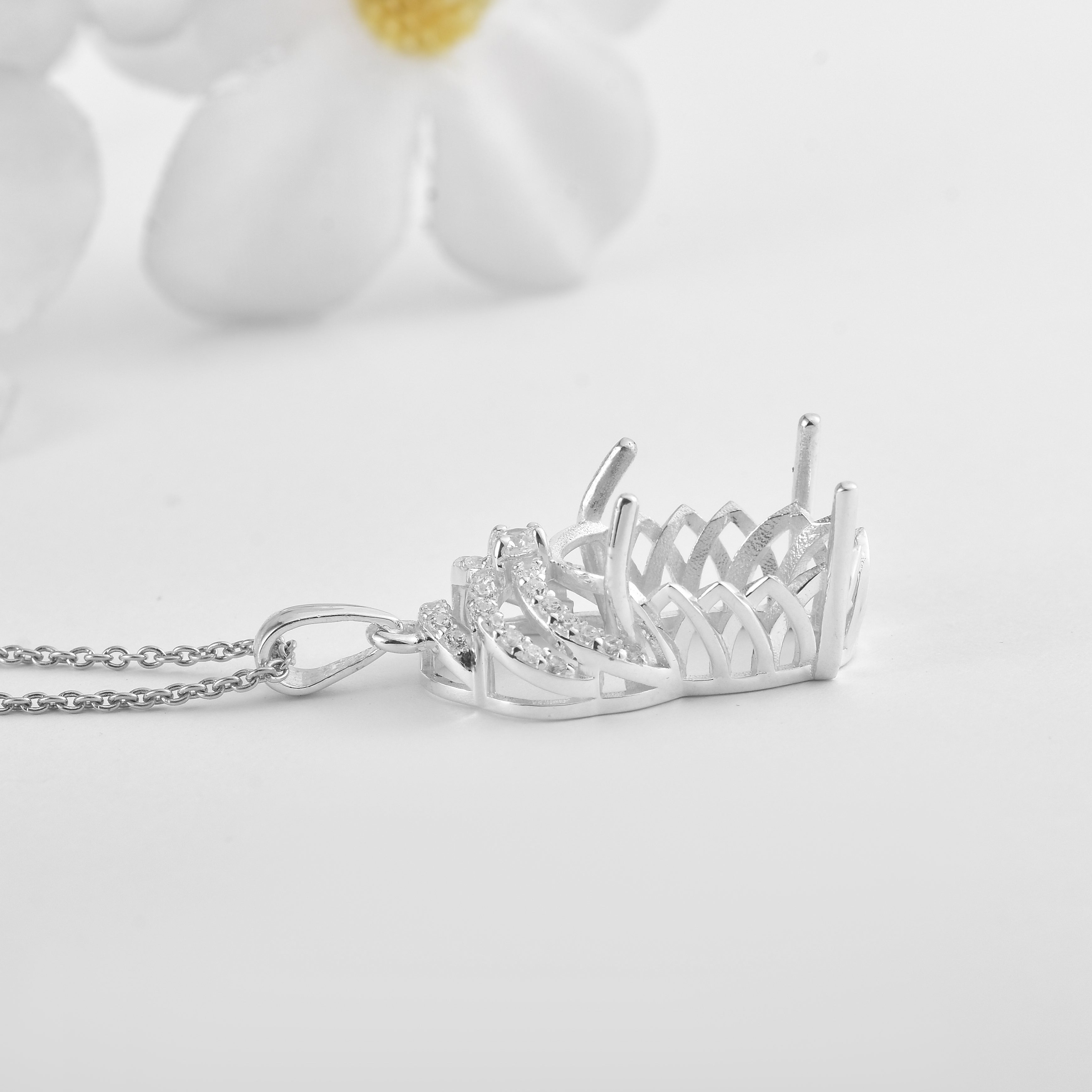 Elevate your gemstone with this beautifully crafted semi-mount pendant in premium 925 sterling silver. Designed to hold a 10x10MM octagon-cut stone, the pendant features a dazzling halo of round cubic zirconia that enhances brilliance while keeping the focus on your chosen gem. Perfect for DIY jewelry projects or custom gifts, this piece combines timeless style with a personal touch.
