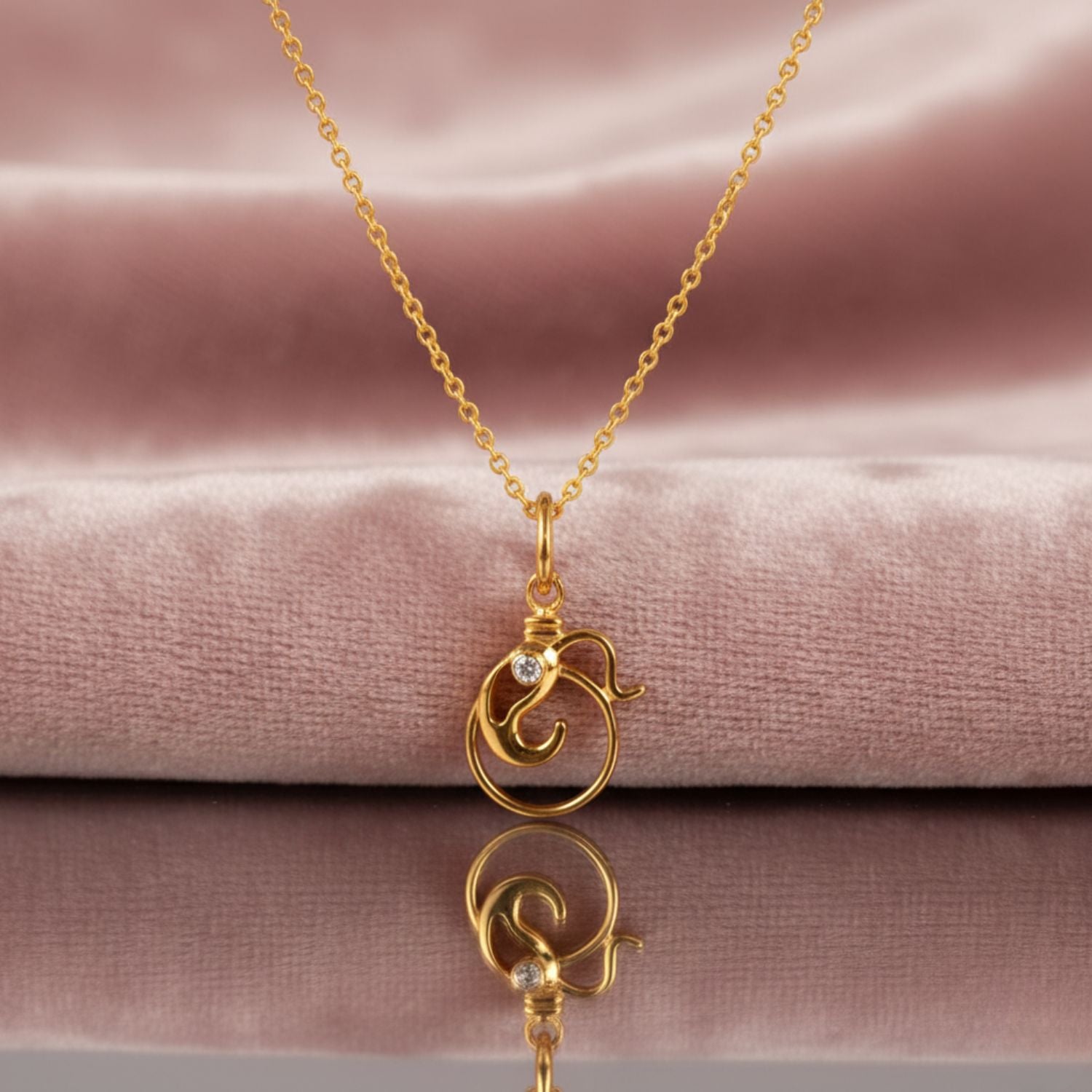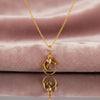 This beautifully crafted pendant necklace features an elegant artistic swirl design plated in rich yellow gold. The fluid curves create a graceful and contemporary look, while a sparkling cubic zirconia stone adds a touch of brilliance at the center. The pendant is suspended from a sleek gold-plated chain, making it a standout piece that blends modern style with timeless elegance.
