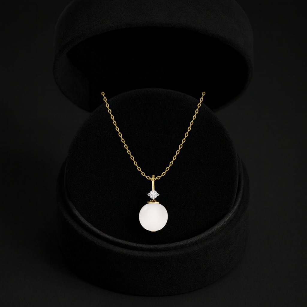 Grace and simplicity meet in this Classic Pearl and Solitaire Pendant Necklace, designed to bring effortless sophistication to your look.