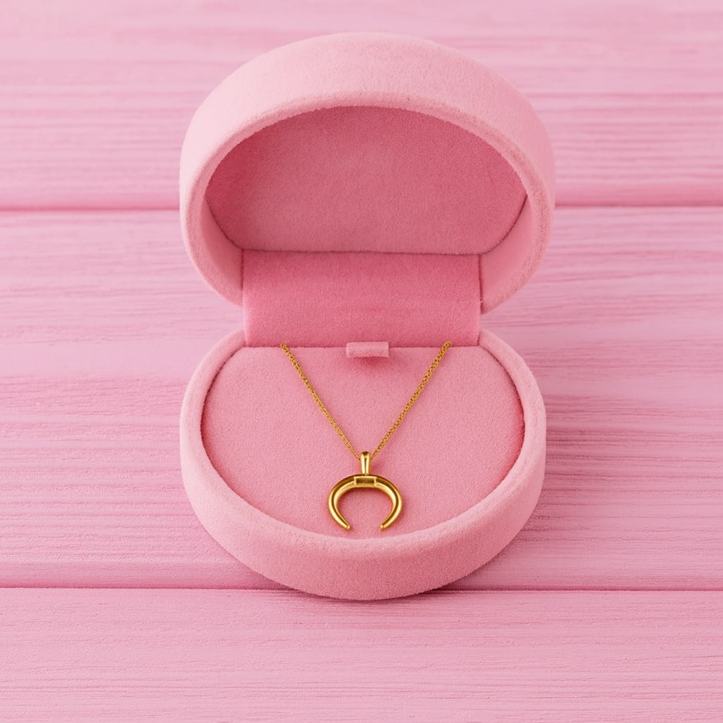 The crescent motif represents empowerment and renewal, making it a meaningful piece to wear or gift.