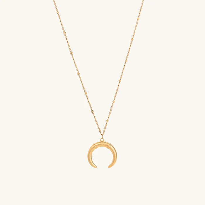 Channel celestial energy with this Crescent Moon Horn Pendant Necklace, a symbol of strength and transformation.