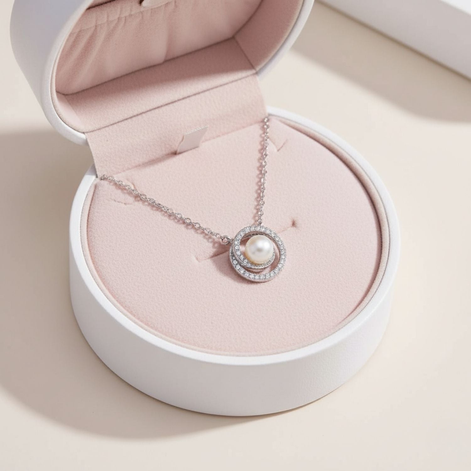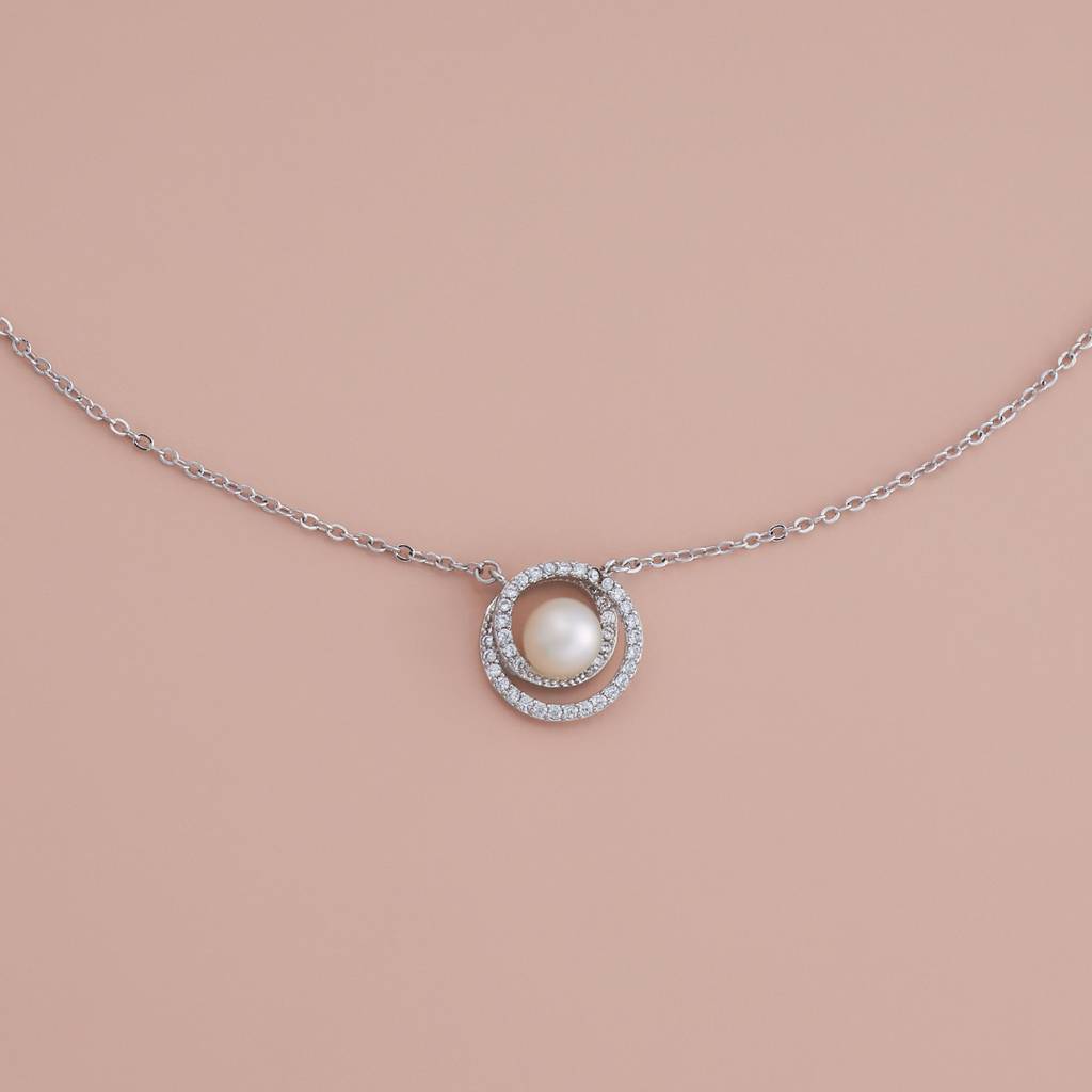 Graceful, timeless, and effortlessly elegant — this Double Halo Pearl Necklace is designed to elevate your everyday look. The pendant features a luminous white pearl set at the center of two dazzling, micro-paved zircon halos, creating a stunning sparkle from every angle.