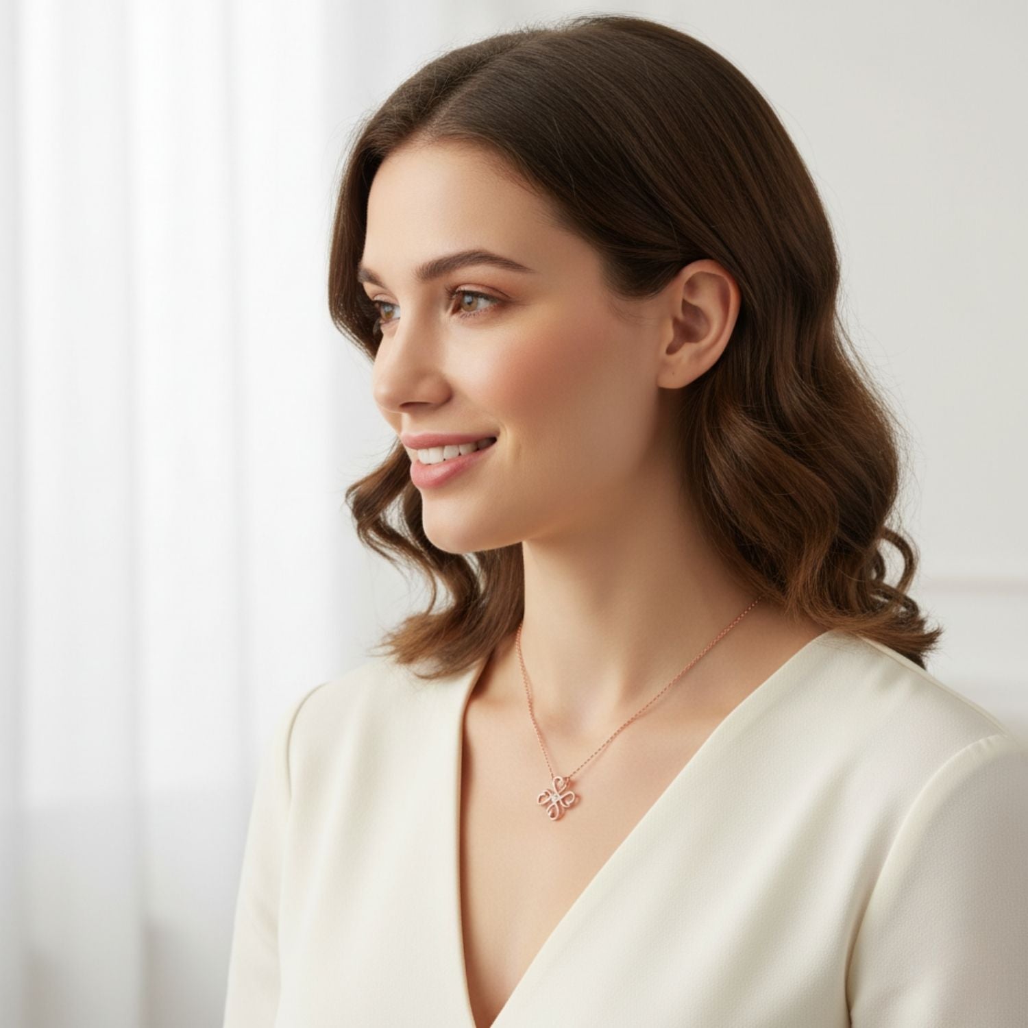 This graceful Infinity Heart Cross Necklace is a timeless expression of love and unity. Beautifully crafted in 925 sterling silver and plated with rose gold, the pendant features a unique intertwining heart motif forming a cross-like design, symbolizing eternal love and faith.