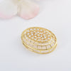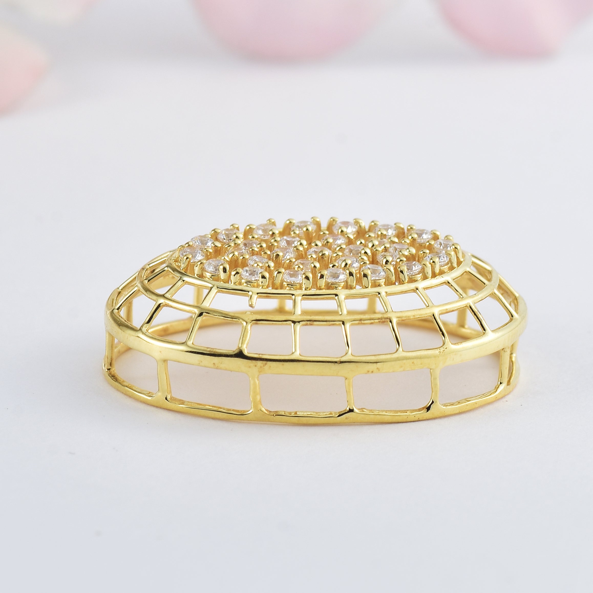 This stunning oval-shaped semi-mount pendant is a blend of vintage elegance and modern craftsmanship. Crafted in 925 sterling silver with a rich gold plating, the piece features an intricate open lattice frame filled with dazzling floral-inspired settings, ready to hold multiple 1.50x1.50MM round stones. Its elegant design makes it a perfect centerpiece for custom gemstone arrangement, turning your creation into a timeless keepsake.