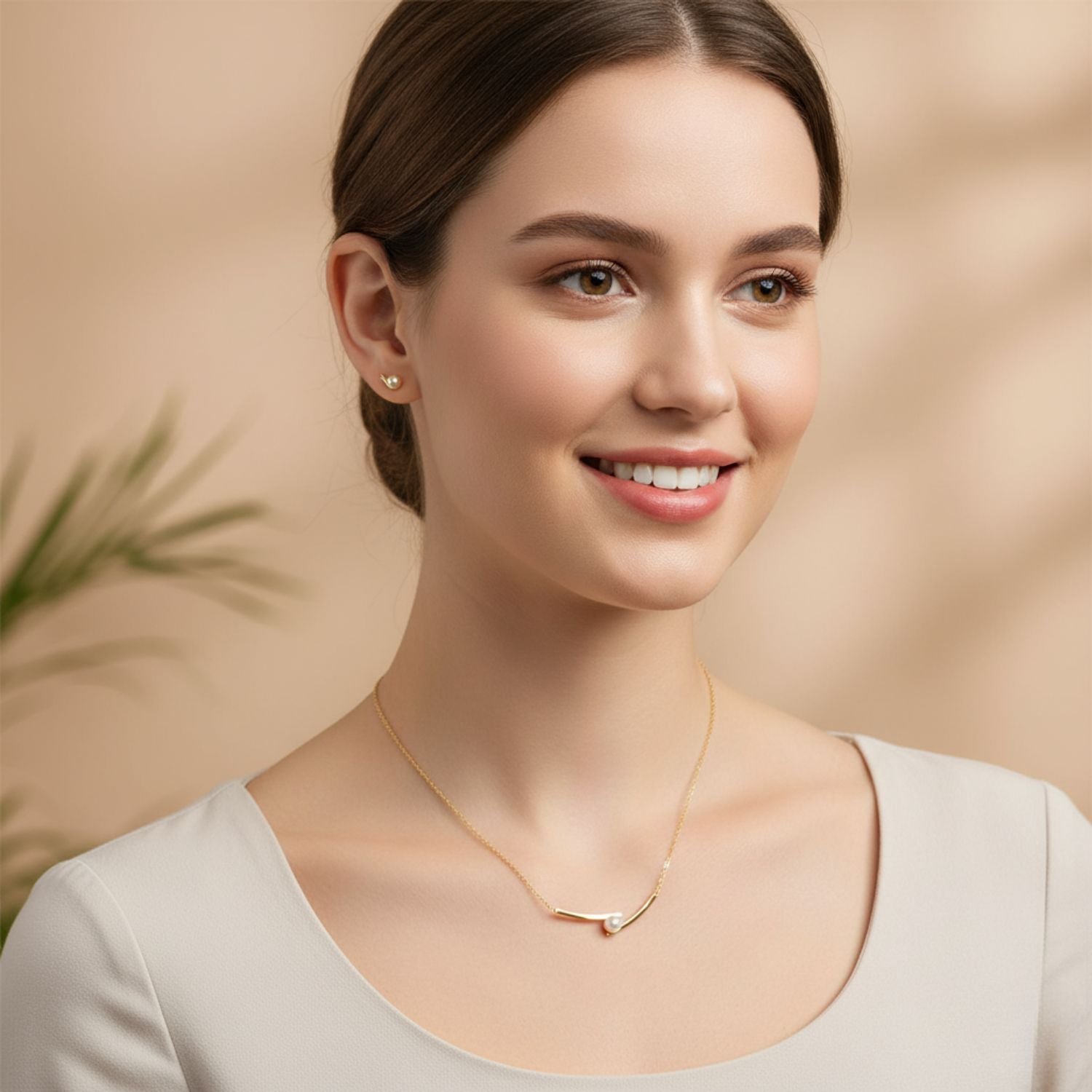 Refined and graceful, this pearl curve bar necklace captures the beauty of simplicity.