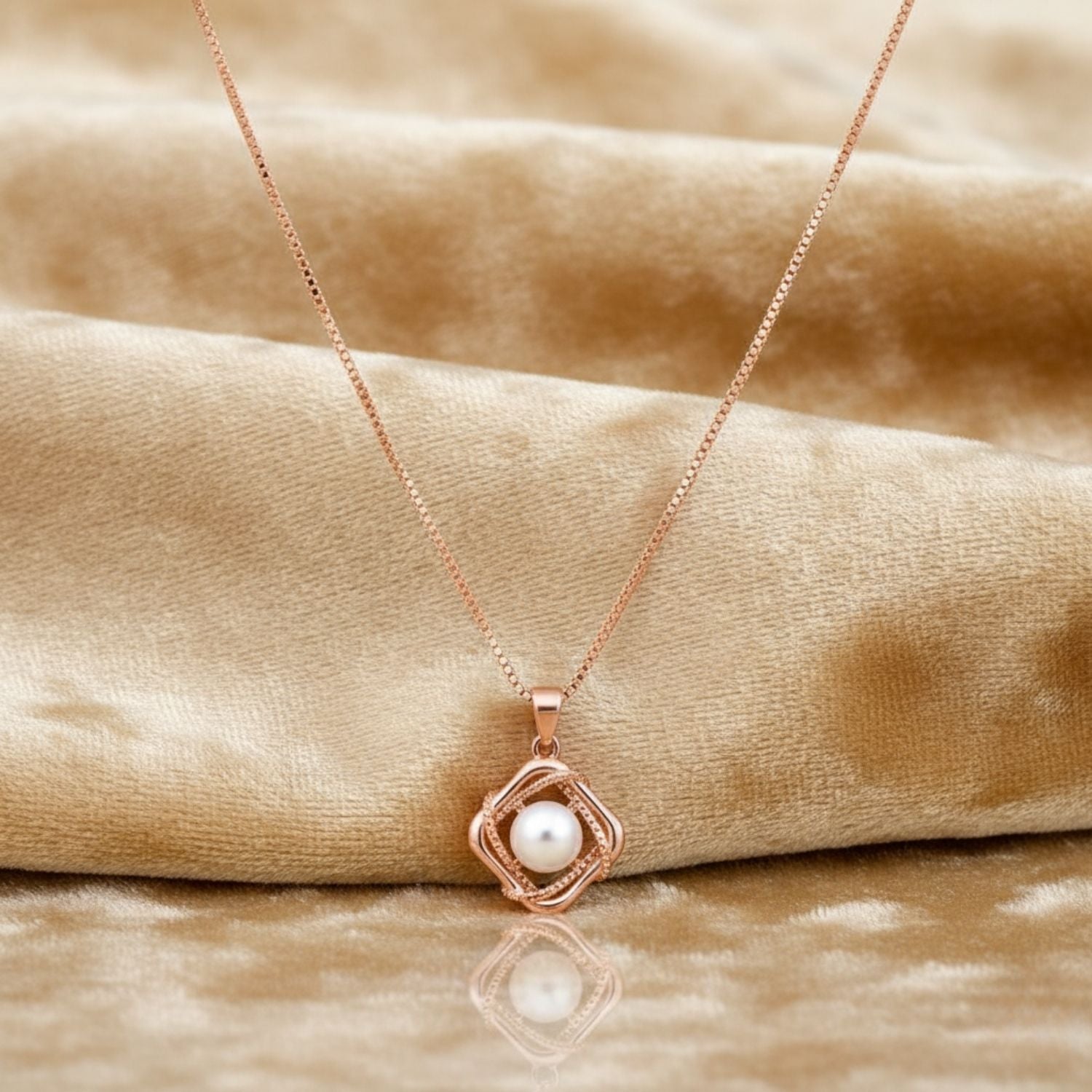 Crafted in 925 sterling silver and finished with durable 18K rose gold plating, the pendant features delicate detailing that enhances the warm glow of the pearl. Perfect for daily wear, office styling, or gifting on special occasions.