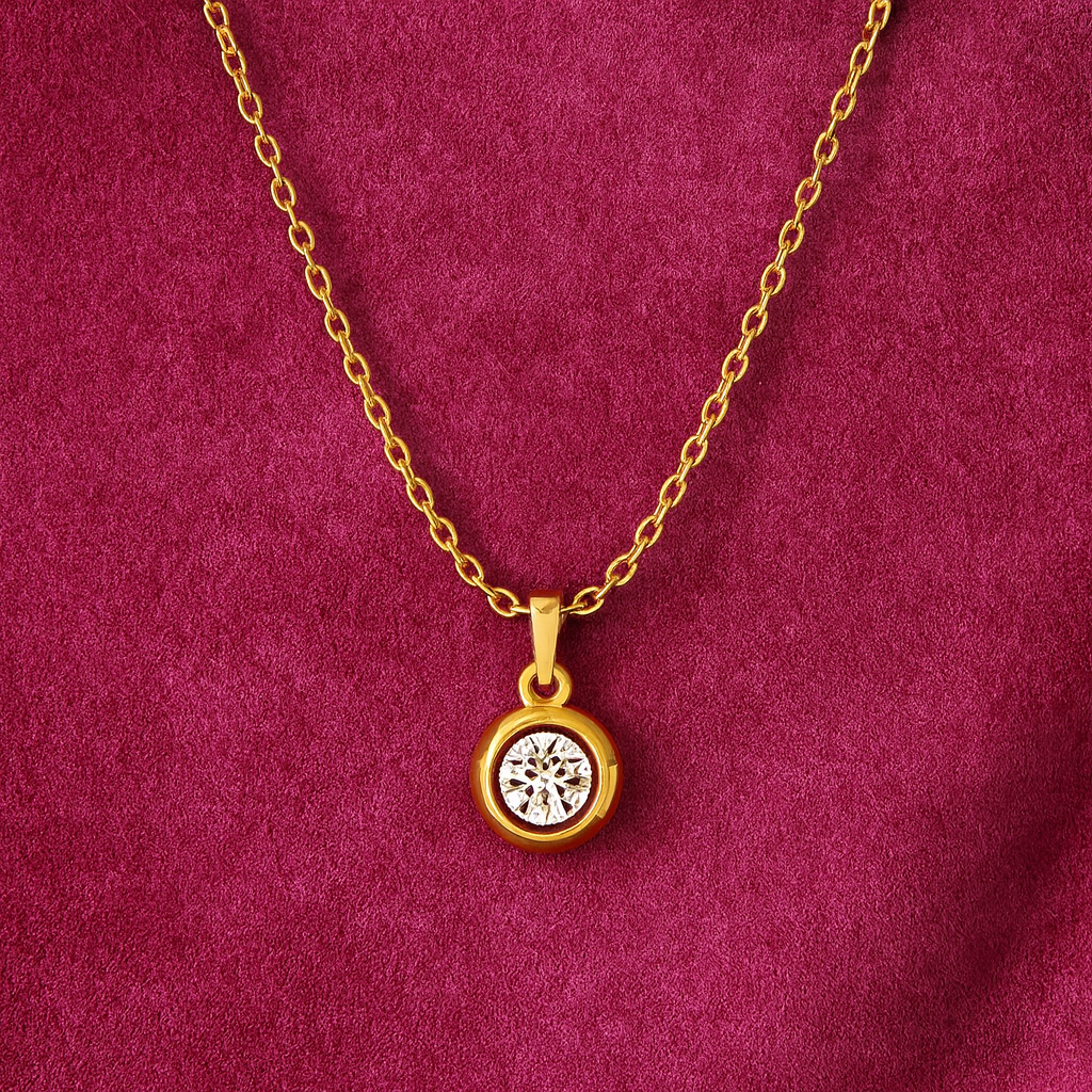 Embrace classic sophistication with this Round Bezel Solitaire Pendant Necklace, featuring a brilliant round-cut cubic zirconia set in a smooth bezel frame.