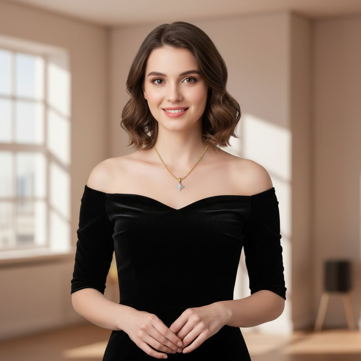 This starburst pendant necklace captures the essence of refined beauty with a modern twist.