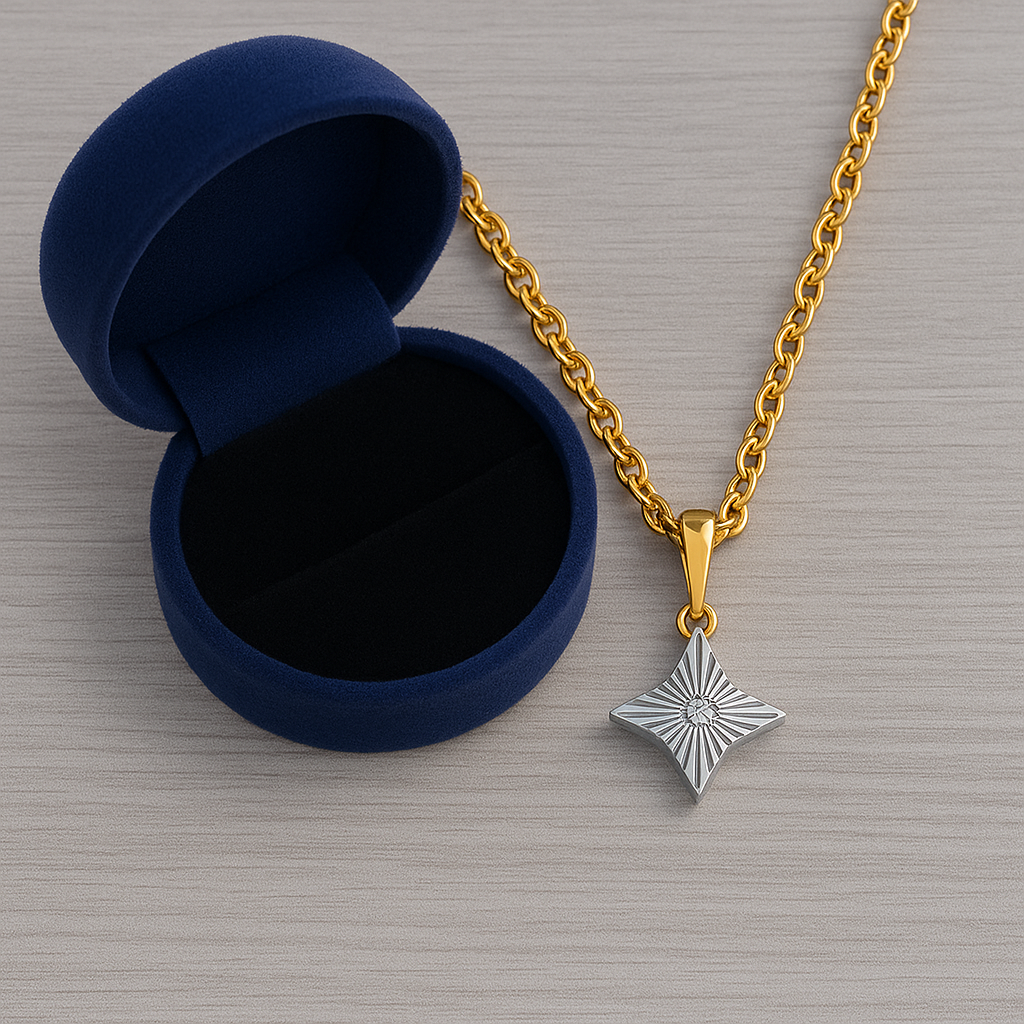 Plating: Two-Tone (Silver Pendant, Yellow Gold Chain)