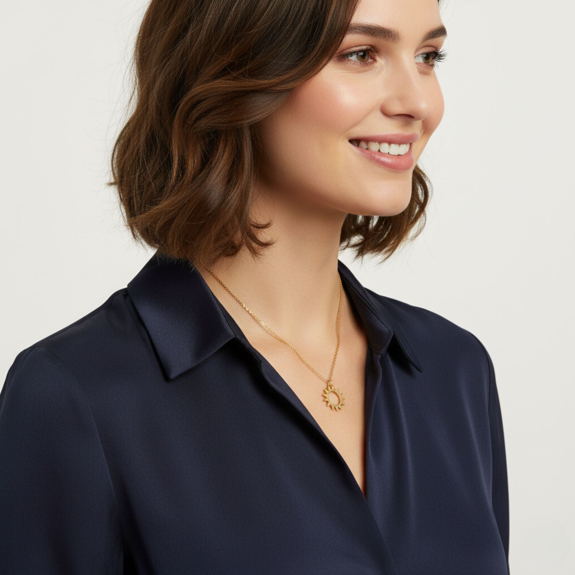 Shine bright with this radiant Sunburst Pendant Necklace, a stunning piece that captures the essence of light and positivity.