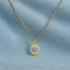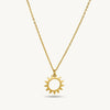 The pendant features a cutout sun motif symbolizing energy, warmth, and renewal — crafted in 925 sterling silver with a luxurious yellow gold plating.