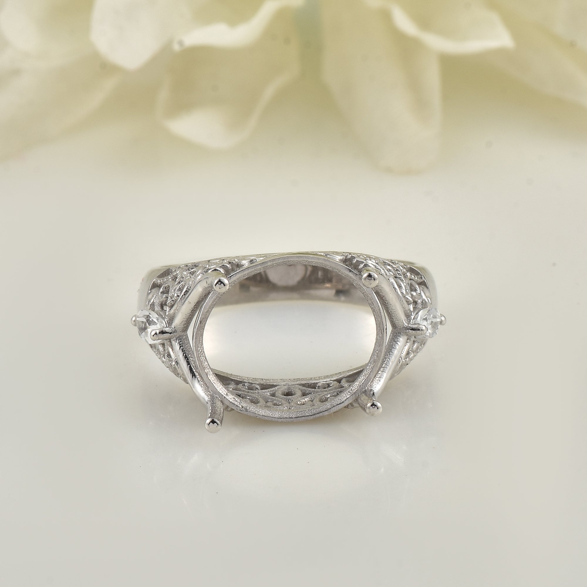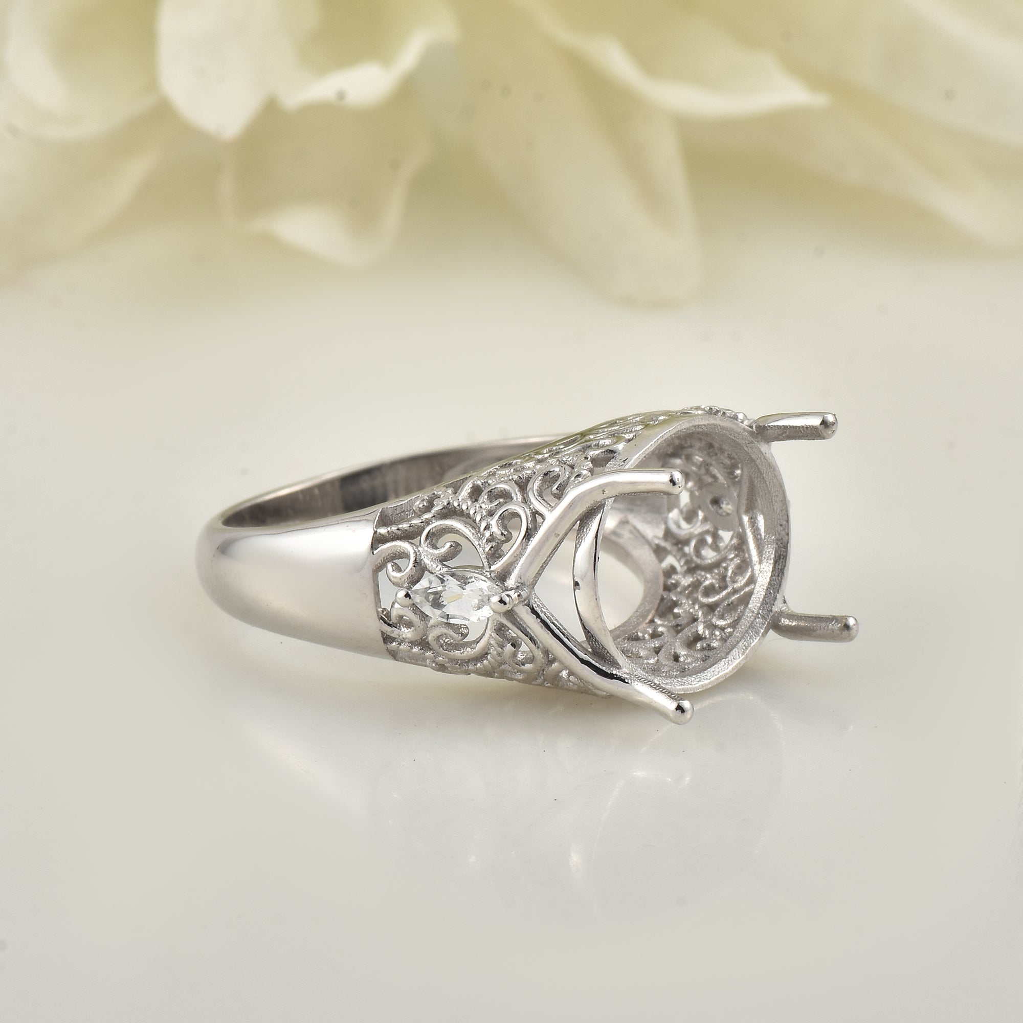 12mm Round Semi Mount Ring 925 Sterling Silver