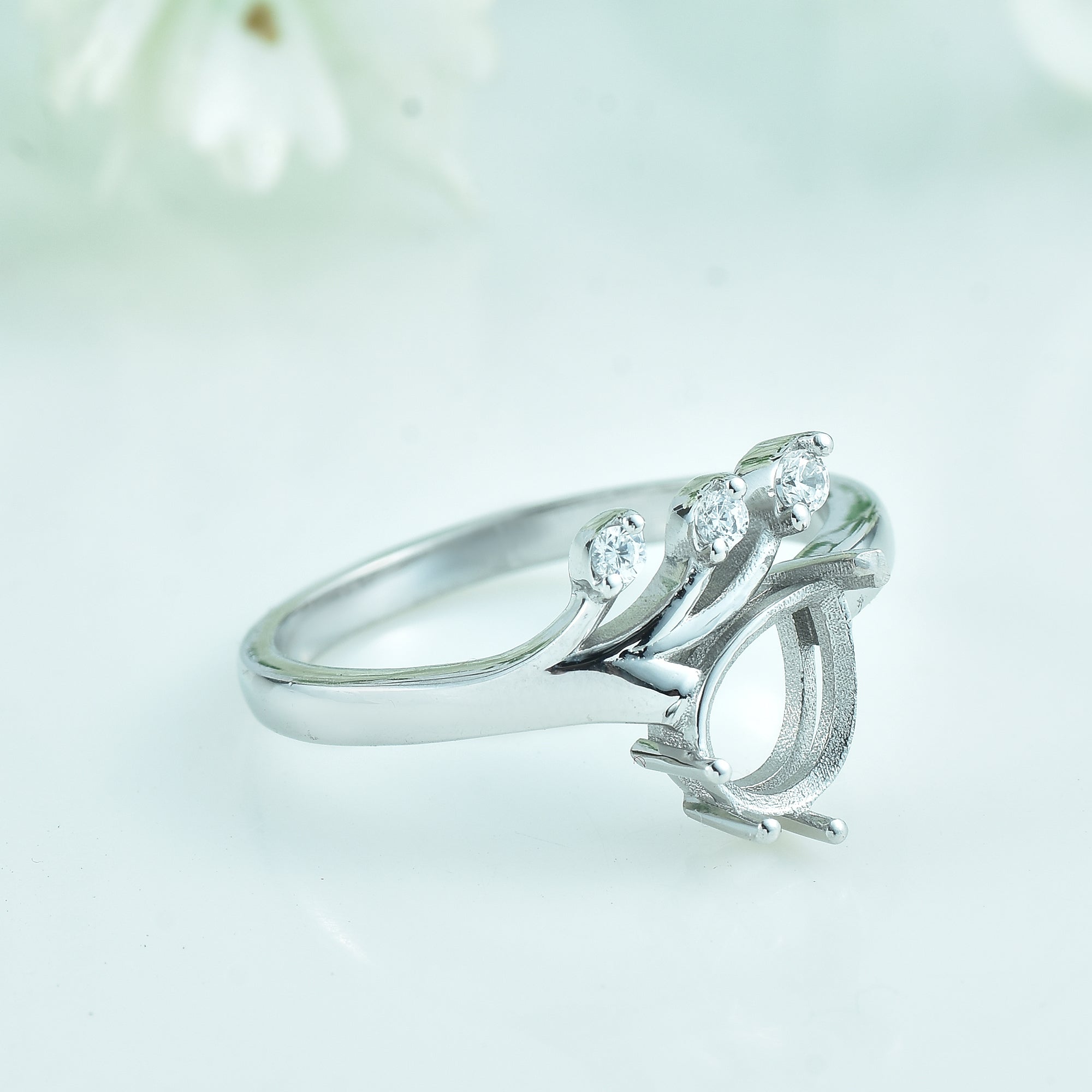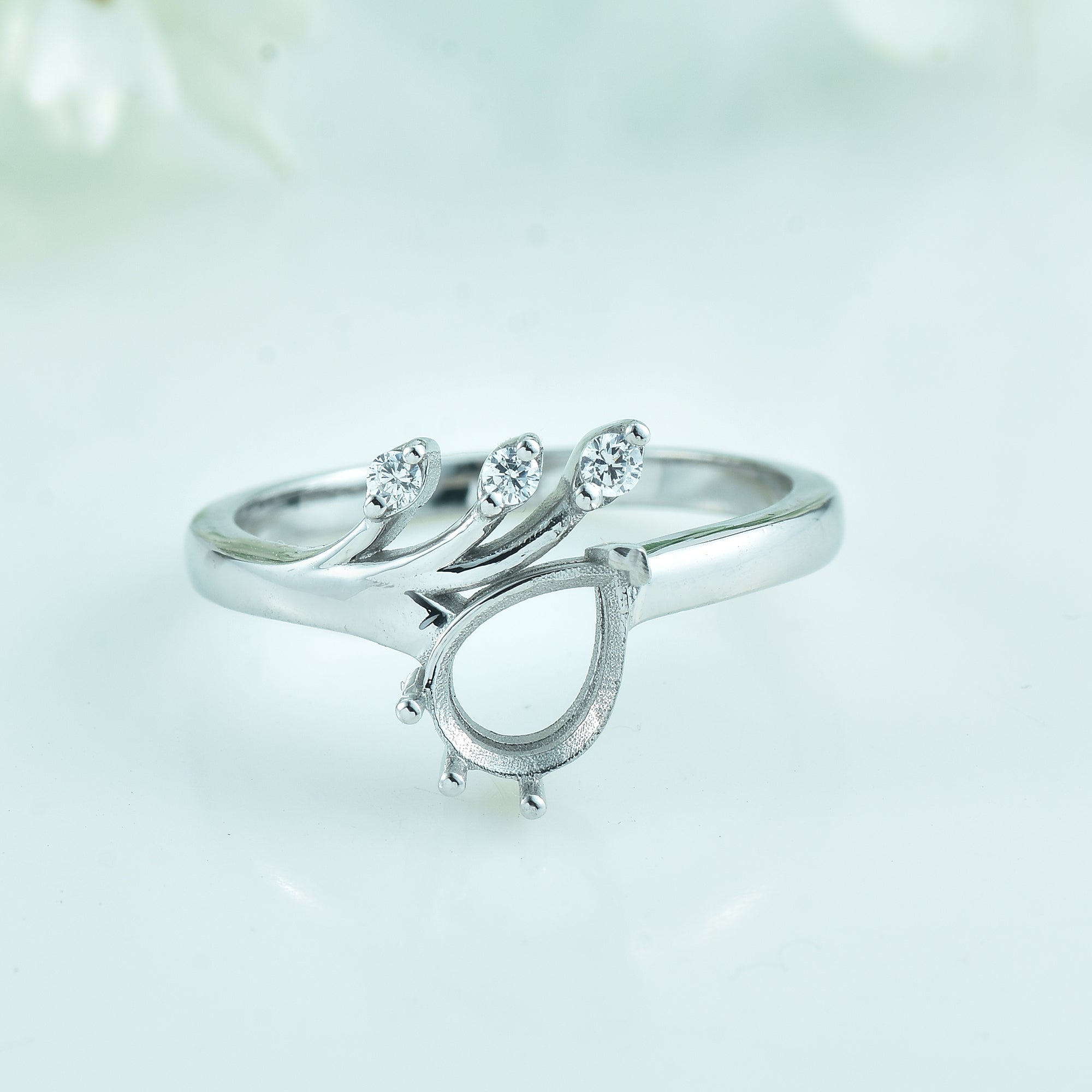 3.00 Carat Pear Cut Semi Mount Ring with CZ Accents in 925 Sterling Silver