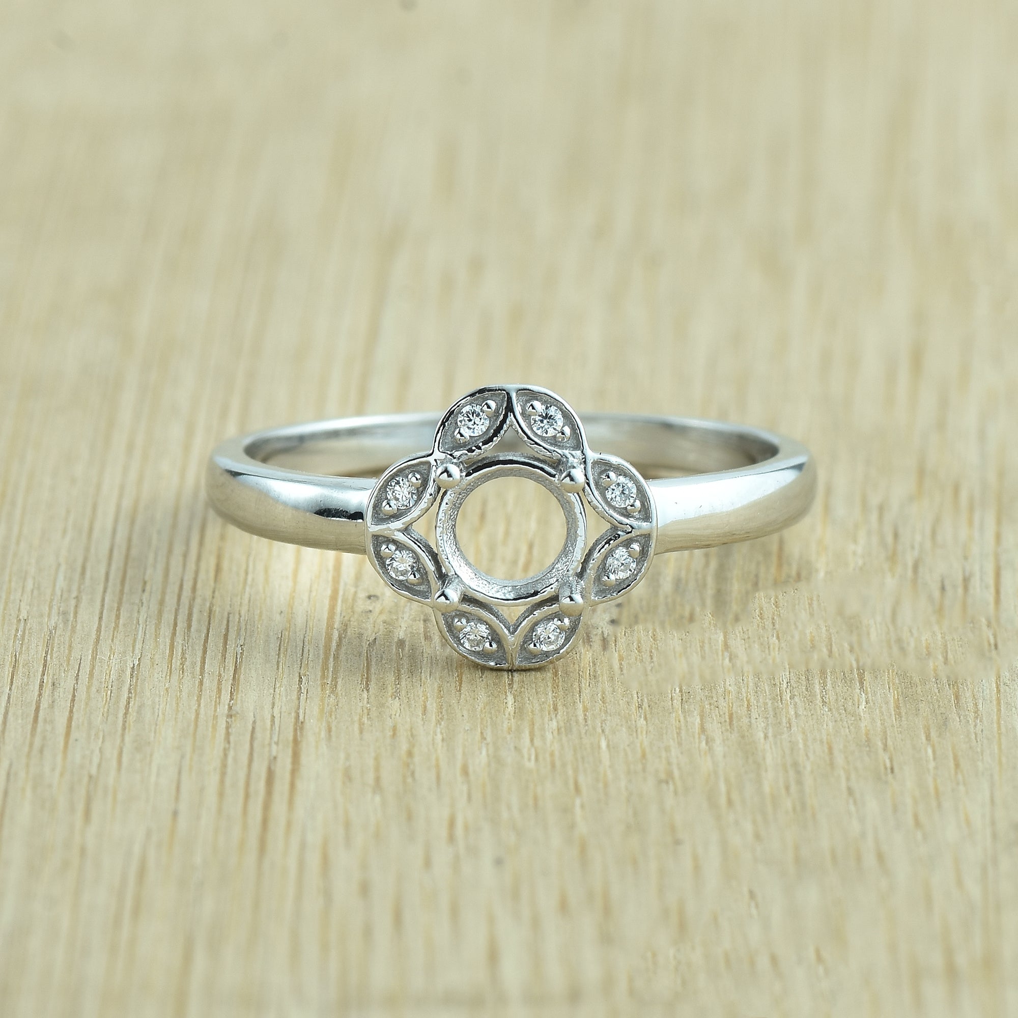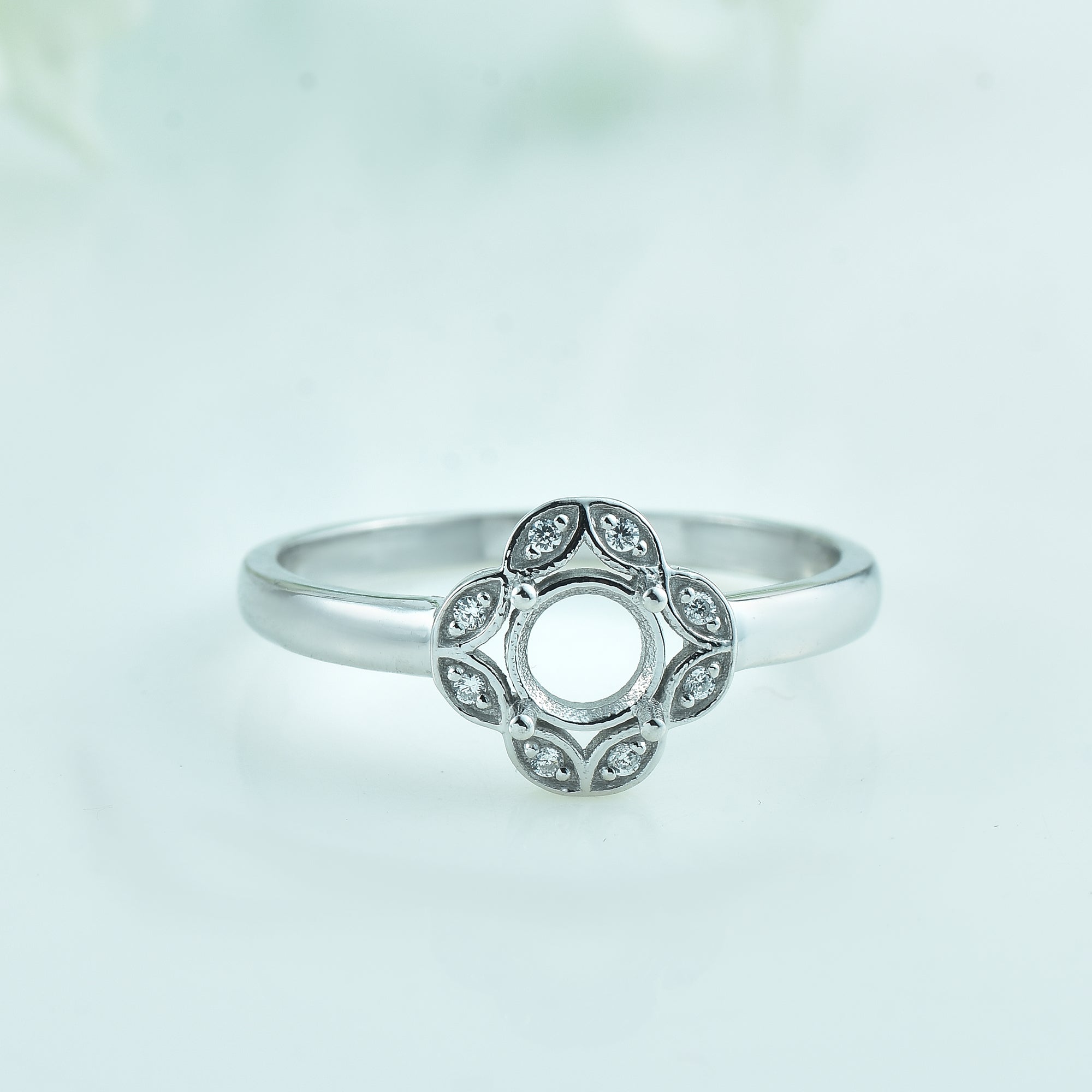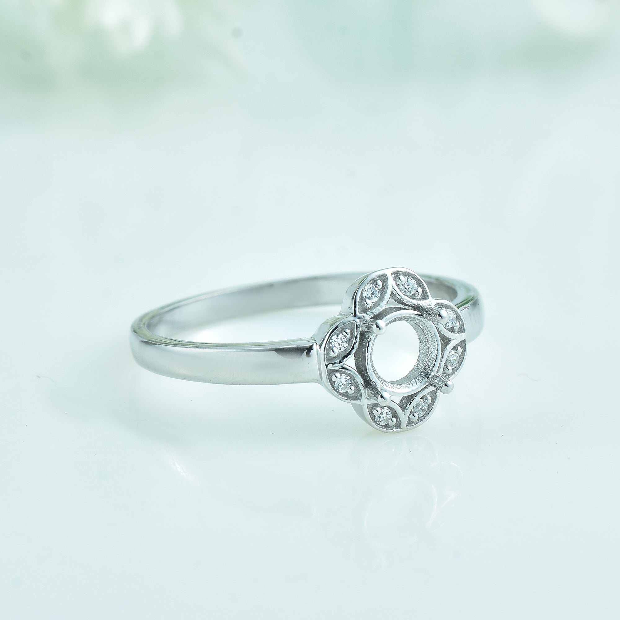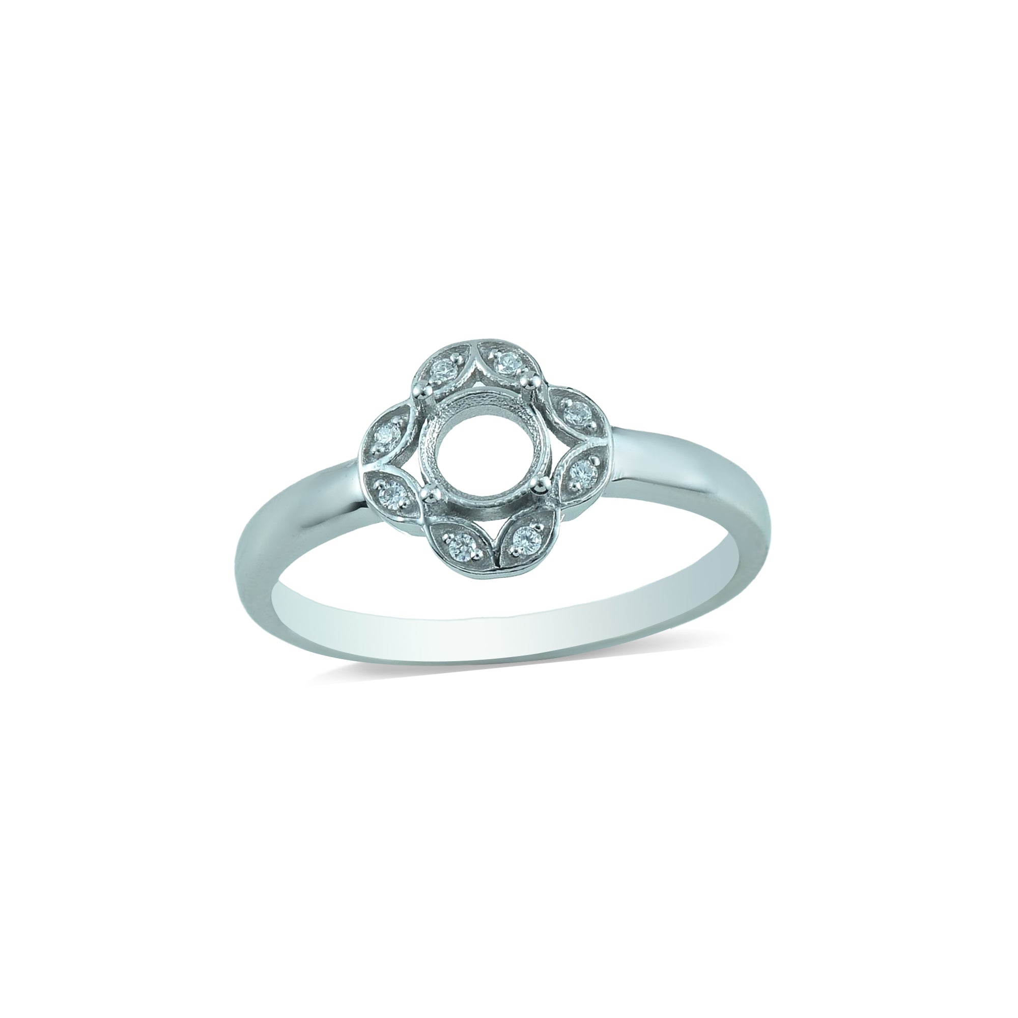 0.50 Carat Round Semi Mount Ring with CZ Accents in 925 Sterling Silver