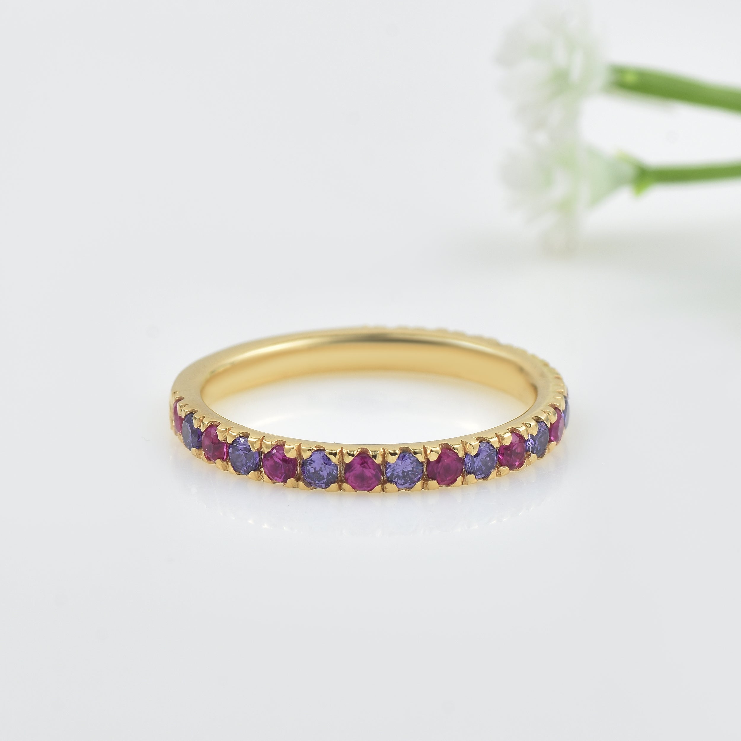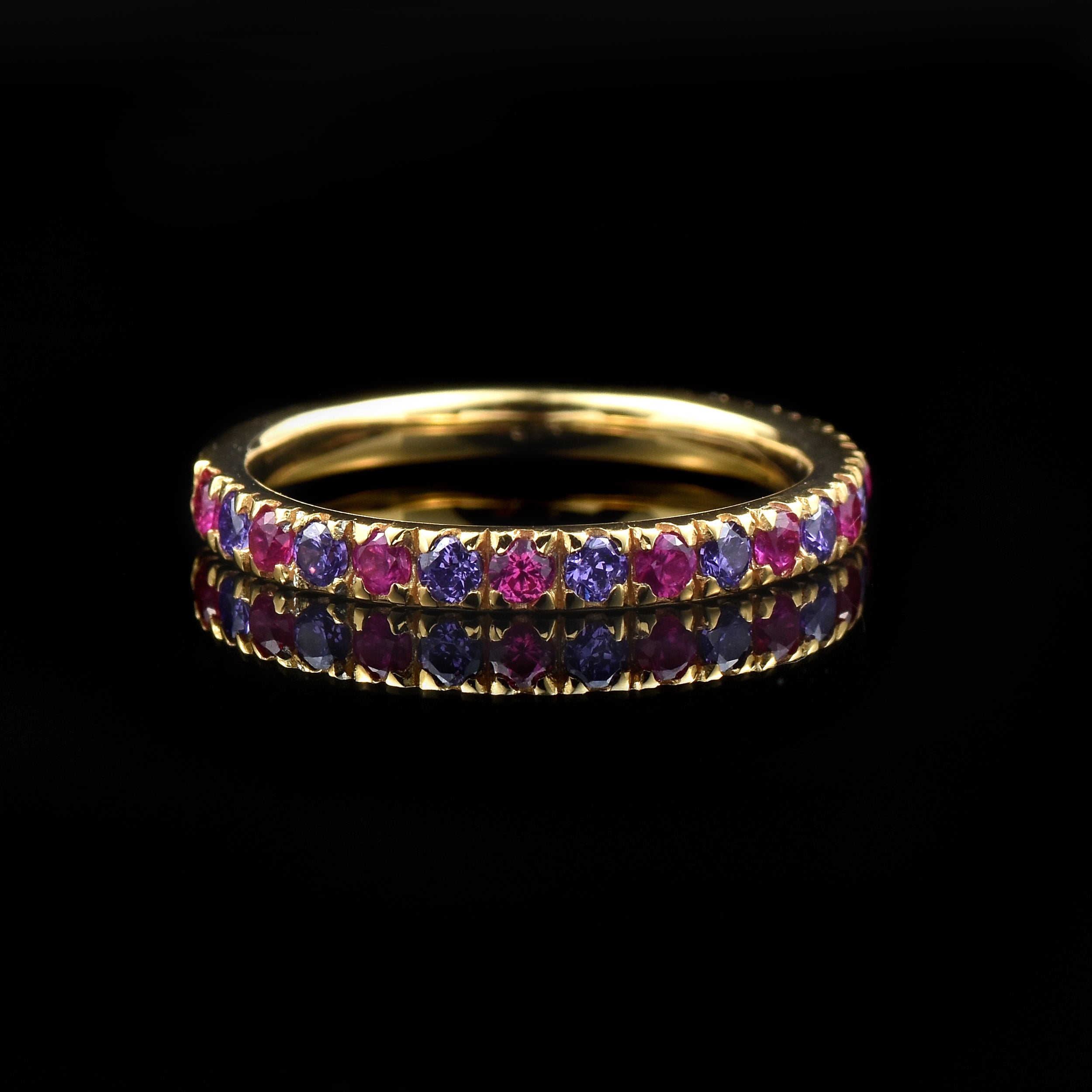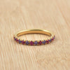 Dainty Gold Vermeil Band with 2x2 mm Round Ruby and Amethyst Gemstones