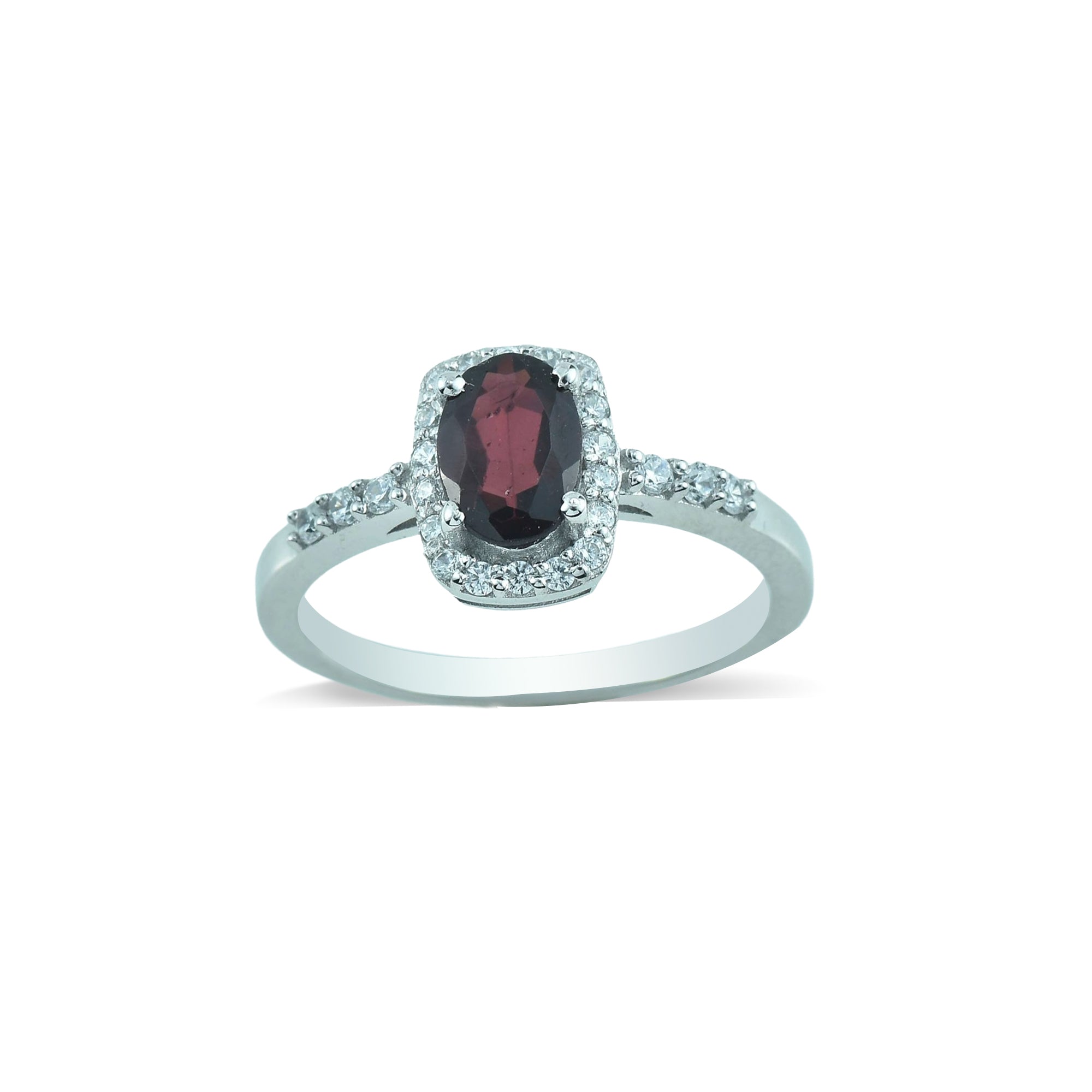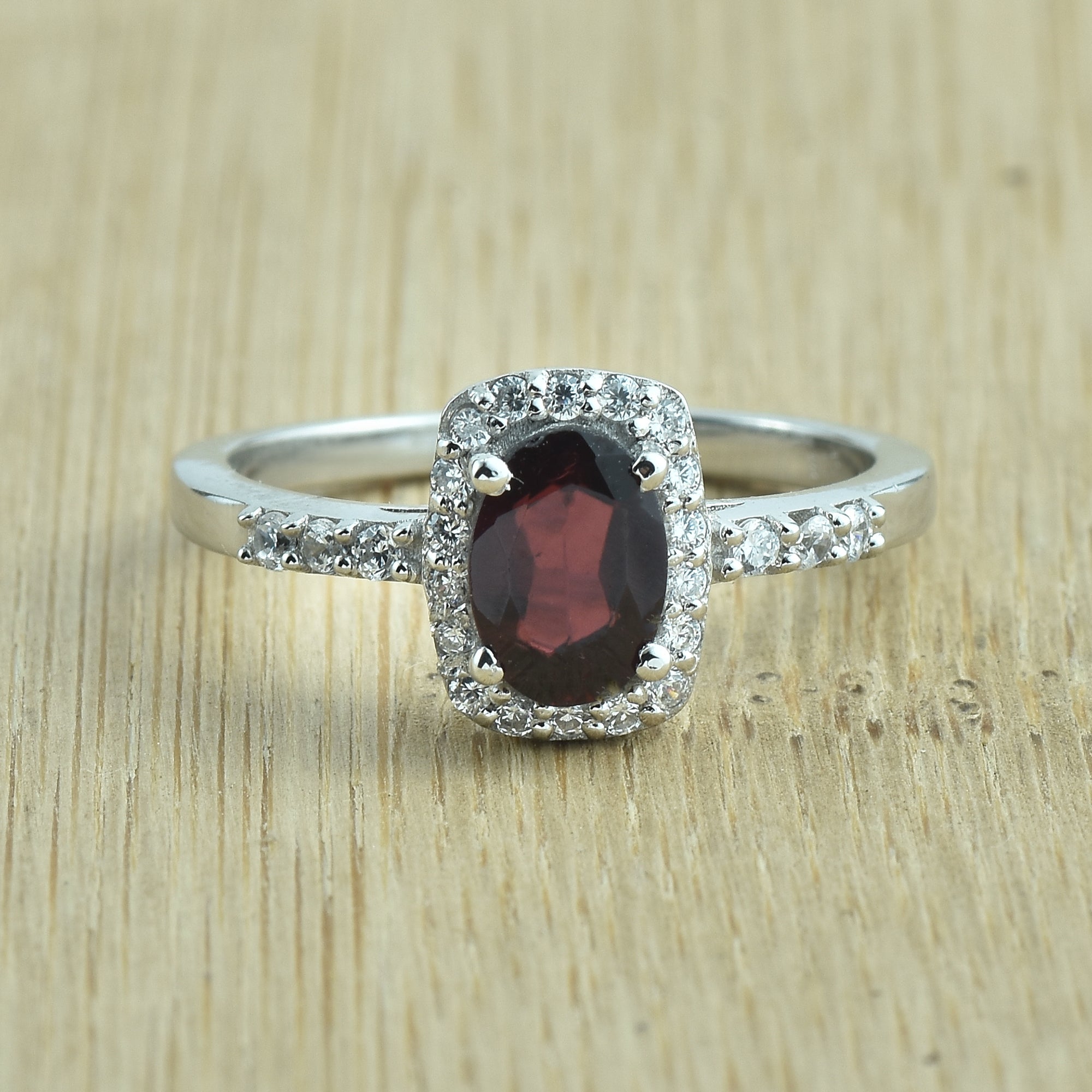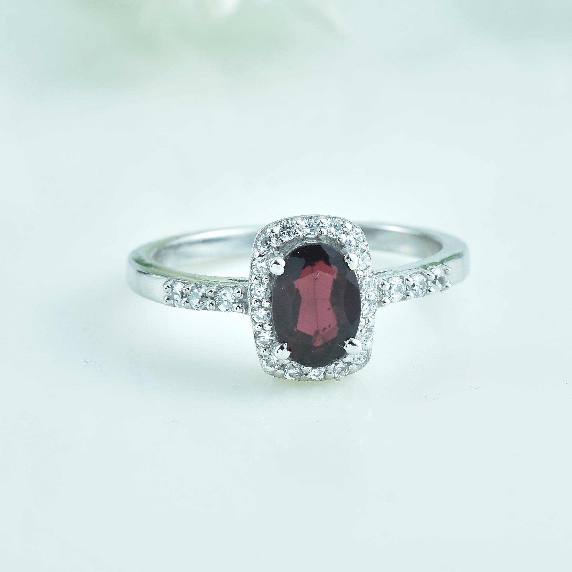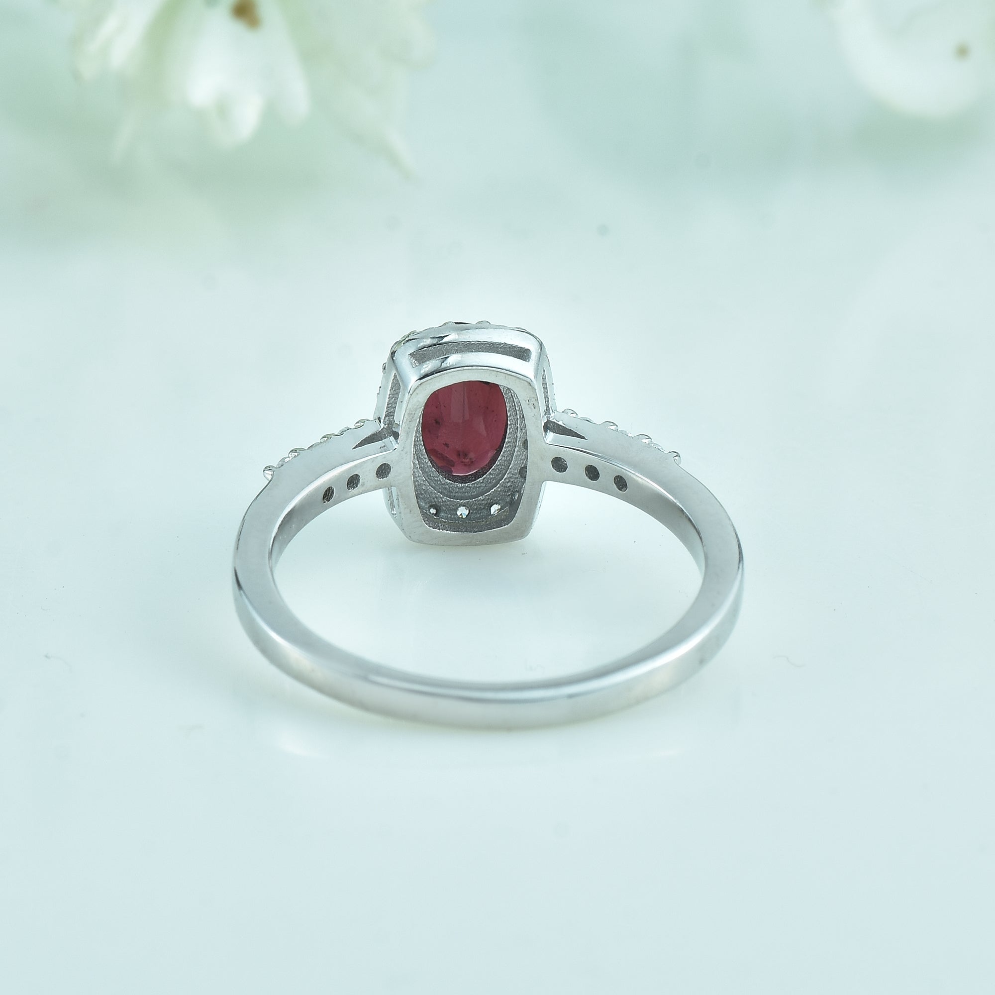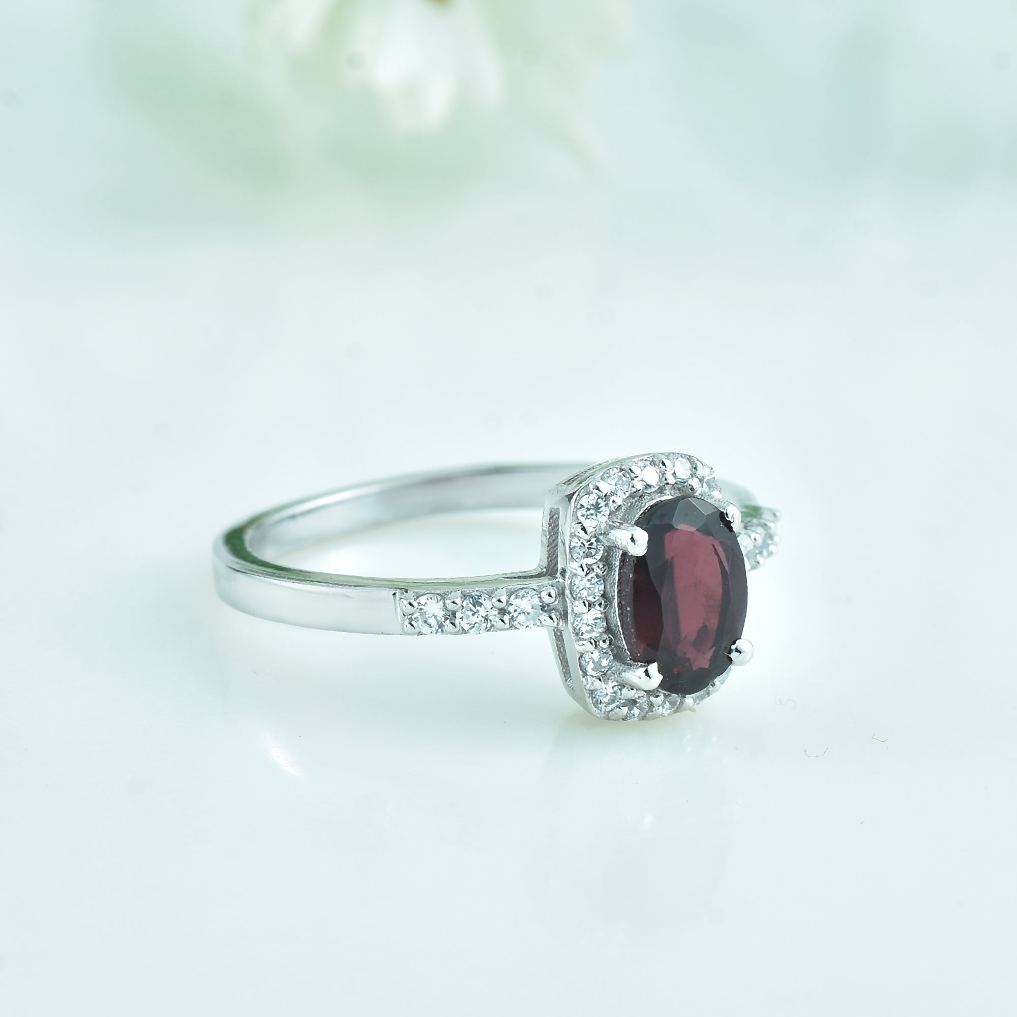 1.65 Carat Oval Rhodolite Garnet Halo Ring 925 Sterling Silver