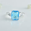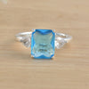 Elegant Emerald-Cut Swiss Blue Topaz Ring with Pear-Shaped Accents