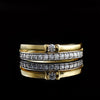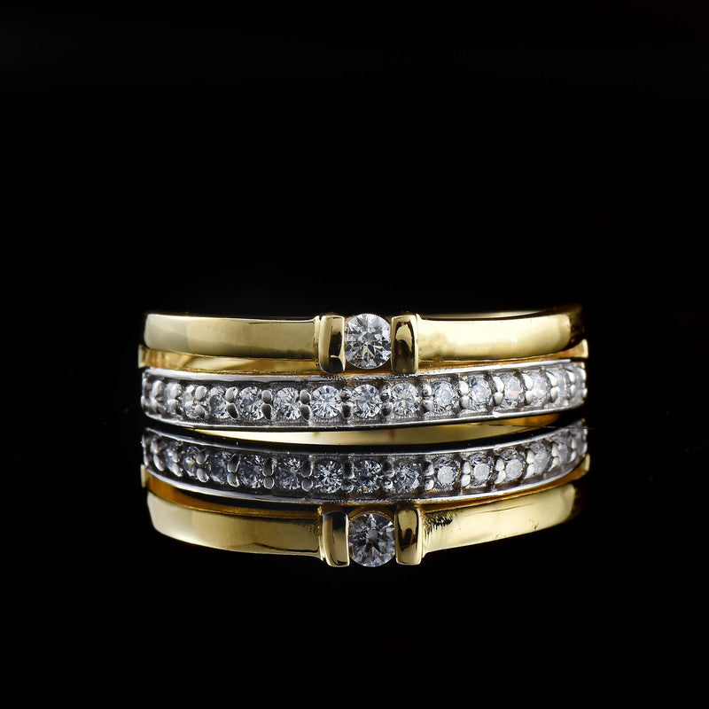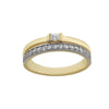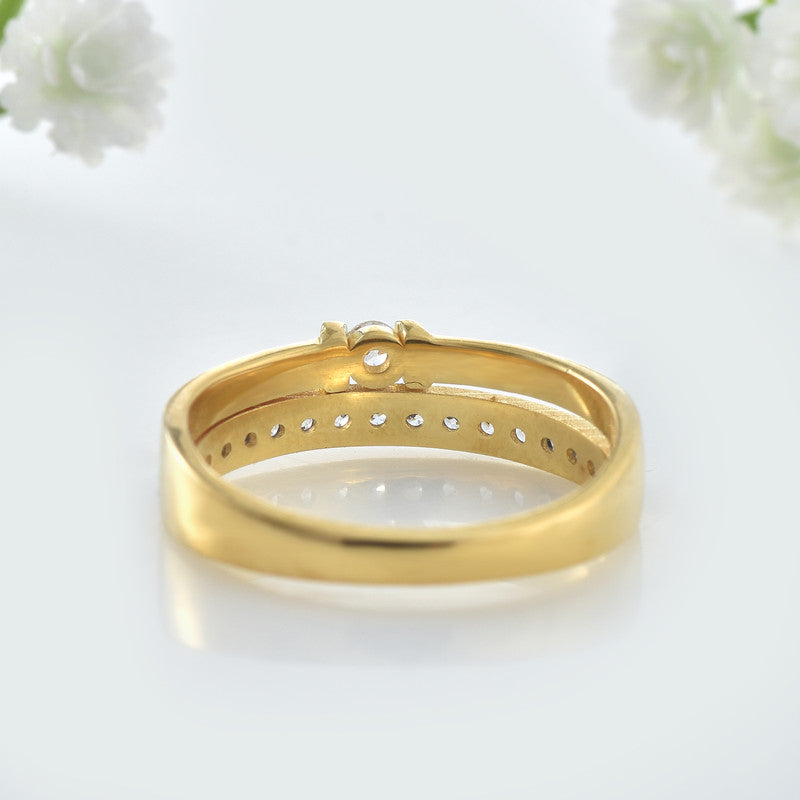 Add a touch of elegance to your collection with this beautifully designed ring. Crafted in solid 925 sterling silver with rich yellow gold plating, it features a sparkling 2.50x2.50MM round-cut white topaz securely set at the center. The band is accented with a row of shimmering cubic zirconia, creating a sophisticated two-tone look. Perfect for everyday wear or as a thoughtful gift, this ring combines modern style with timeless beauty.
