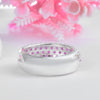 Radiating vibrant elegance, this stunning band ring features rows of sparkling 2x2mm round-cut pink topaz, beautifully accented with shimmering white stones. Set in lustrous sterling silver, this wide eternity-style band makes a bold yet graceful statement — perfect for anniversaries, weddings, or simply celebrating your style.