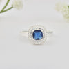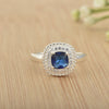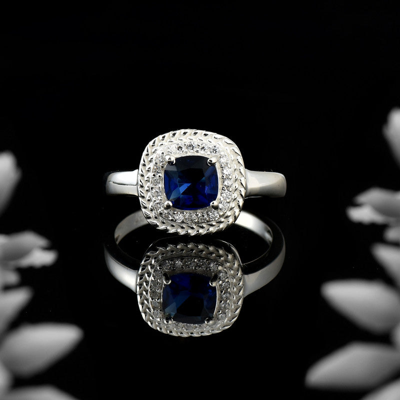 This stunning ring features a 6x6mm cushion-cut Blue Sapphire at its center, beautifully framed by a shimmering halo of sparkling accents. Set in high-quality sterling silver, the sapphire’s deep royal blue hue exudes elegance and timeless charm. The cushion cut enhances the stone’s brilliance while giving it a sophisticated vintage-inspired look. Perfect as an engagement ring, anniversary gift, or a luxurious everyday accessory, this Blue Sapphire ring is a true symbol of love, wisdom, and royalty.