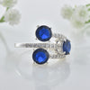 Elegant Three-Stone Blue Sapphire & CZ Accent Ring
