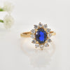 Elevate your style with this exquisite 925 sterling silver ring, featuring a rich 8x6MM oval-cut blue sapphire at the center. A brilliant halo of sparkling cubic zirconia surrounds the deep blue stone, creating a timeless and sophisticated look. The sleek sterling silver band enhances the brilliance of the gemstones, making it a perfect choice for engagements, anniversaries, or a touch of everyday luxury.