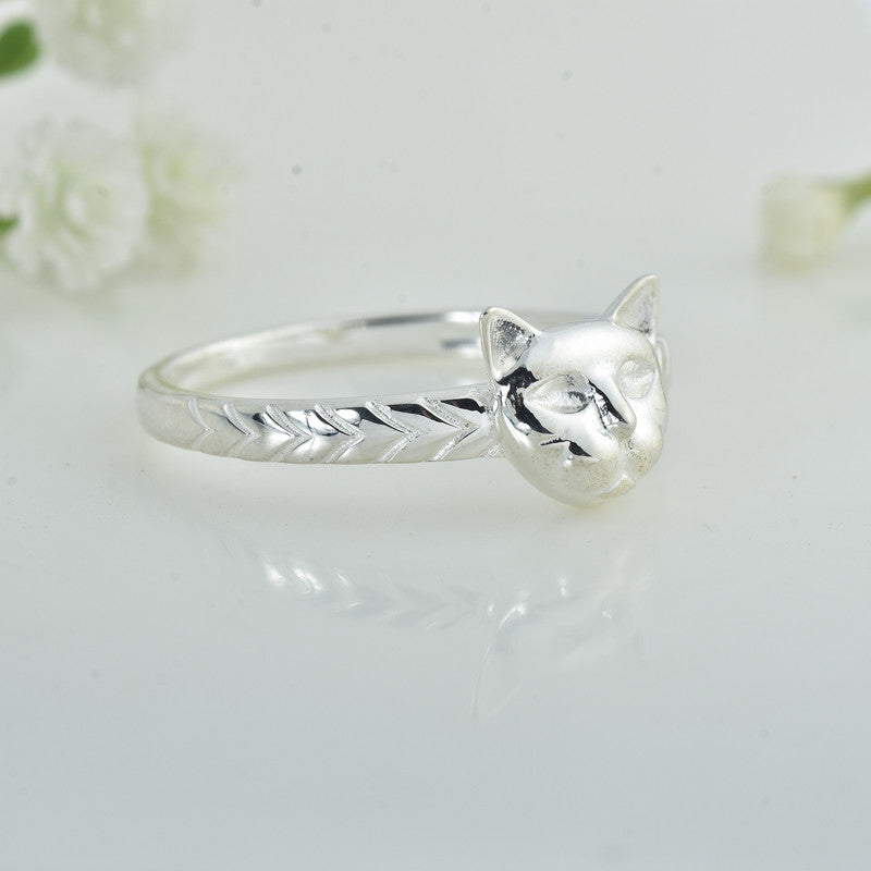 Crafted in solid 925 sterling silver, the ring makes a thoughtful gift for cat lovers or a unique addition to your own jewelry collection. Lightweight and stylish, it can be worn every day or stacked with other bands for a modern layered look.